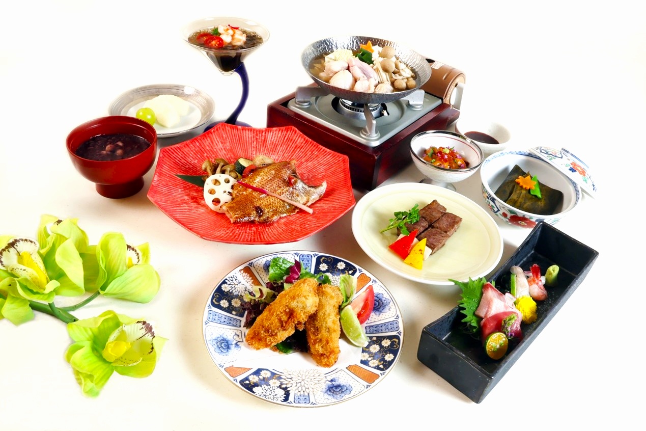 中山日本料理廳則以冬末初春的珍味安鱇魚為主角,推出「冬旬安鱇・迎春雅膳」會席料理。前菜明蝦水雲醋色彩繽紛,刺身選用五種當令鮮魚,蒸物昆布鮑魚細膩鮮香,炸物廣島生蠔外酥內嫩,燒物紅喉魚味噌燒鹹香入味。強肴以A5和牛佐橙醋醬汁,層次分明;壽司則以海膽與鮭魚卵堆疊成迷你海鮮丼。壓軸的安鱇魚小火鍋以魚骨熬湯,鮮美濃郁,為整席料理畫下雅緻句點。
