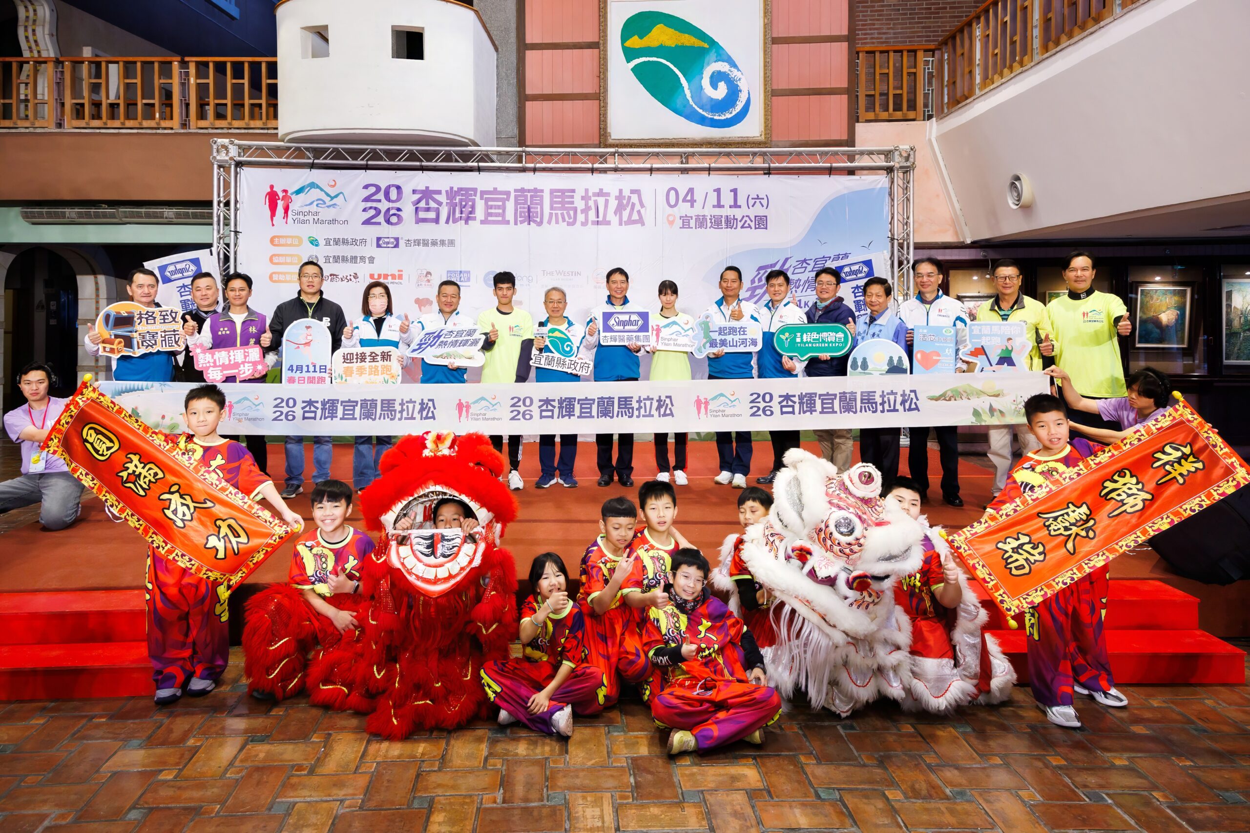 宜蘭縣政府與杏輝醫藥攜手合作的年度體育盛事——「2026杏輝宜蘭馬拉松」,於6日上午在宜蘭縣政府縣民大廳盛大舉辦宜蘭場記者會。活動開場由宜蘭大洲國小醒獅戰鼓團帶來震撼演出,以齊鳴的鼓聲象徵春季甦醒,正式揭開賽事序幕。本屆賽事將於115年4月11日(星期六)在宜蘭運動公園田徑場舉行,這也是該賽事首次從往年的11月移師至氣候宜人的春季舉辦。今年的主題定為「勁杏宜蘭・熱情輝灑」,期盼跑者能在4月的舒適天氣中,用雙腳貼近宜蘭的自然風景,感受這座城市結合文化與運動的獨特魅力。