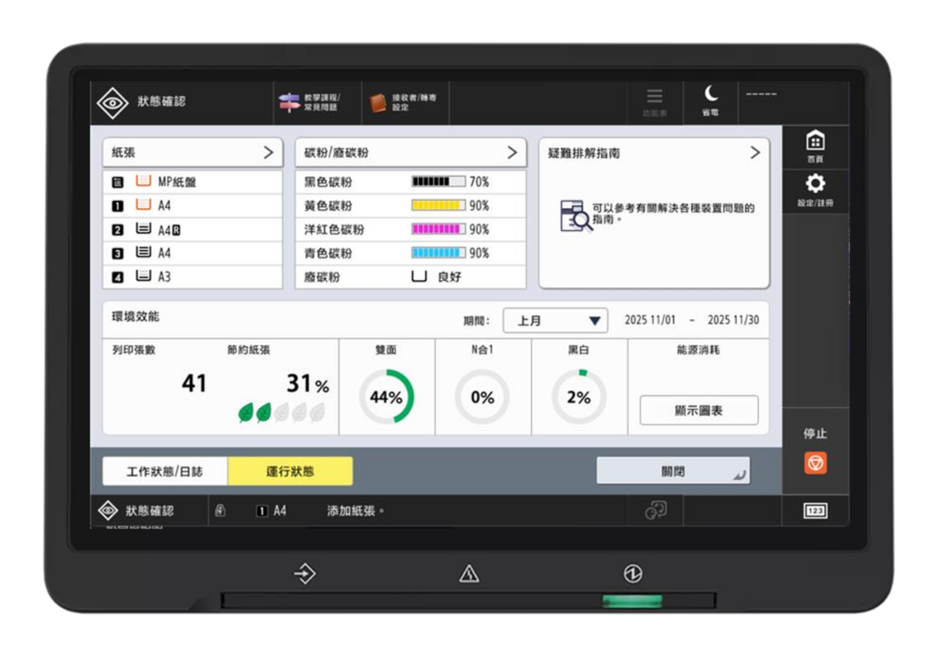 在營運穩定性方面,imageFORCE 系列導入E² Analysis AI 預測性維護機制,透過 Edge IC 與機器學習技術,即時分析設備運作與網路狀態,主動預測潛在異常並在問題發生前即完成風險排除,有效降低突發停機機率,同時強化整體資訊安全。透過穩定一致的輸出品質與智慧化維護能力,imageFORCE 讓商用複合機不再只是設備,而是企業營運中值得信賴、持續運轉的智慧夥伴。
