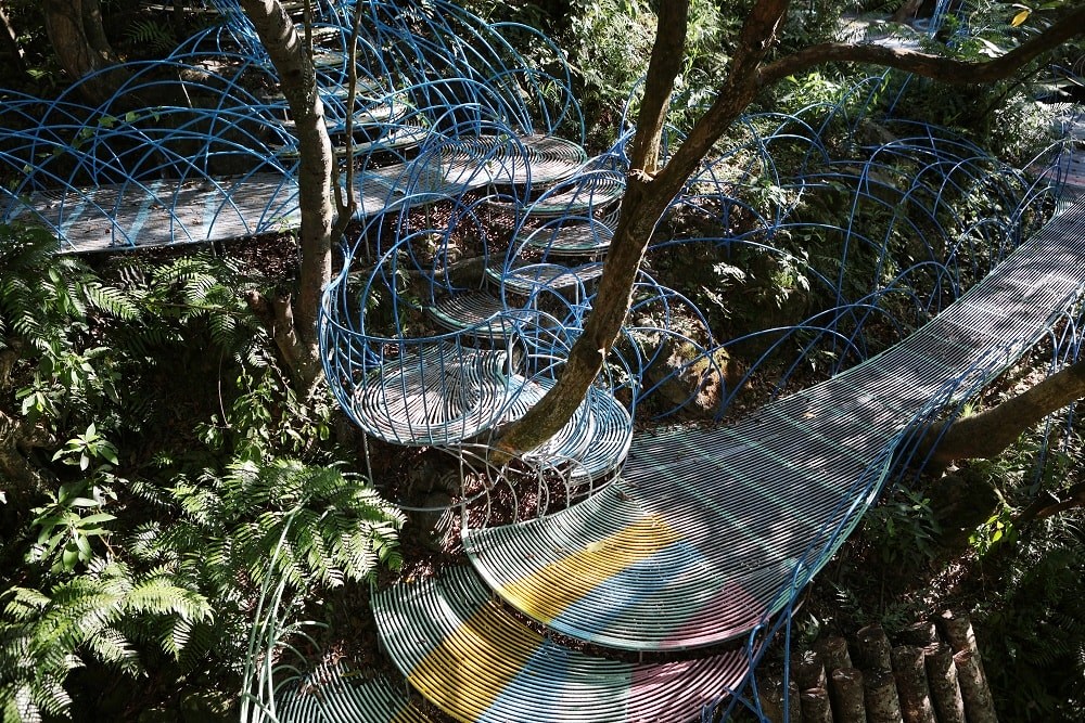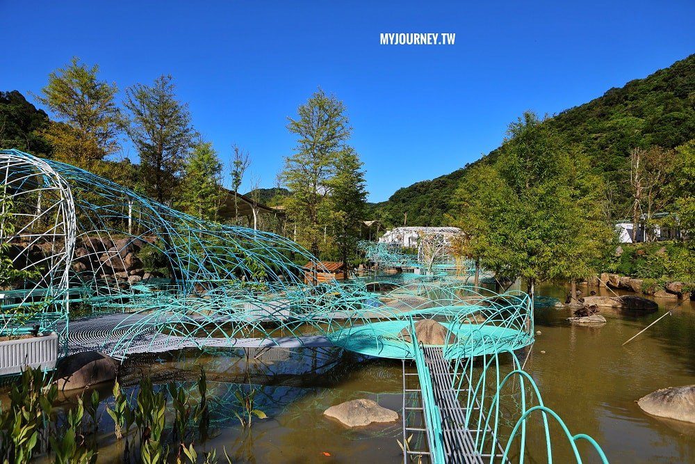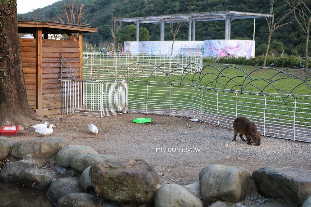 在體驗面向上,亮山川也規劃了多樣戶外與生態設施。園區內設有全台少見的彩色鋼筋步道,穿梭於林間與水域之上,兼具散步與拍照功能,是許多旅客必訪的打卡景點。此外,農場開放與水豚、梅花鹿、鴨群與雞隻近距離互動,讓孩子在遊玩過程中自然接觸動物,增添寓教於樂的價值。