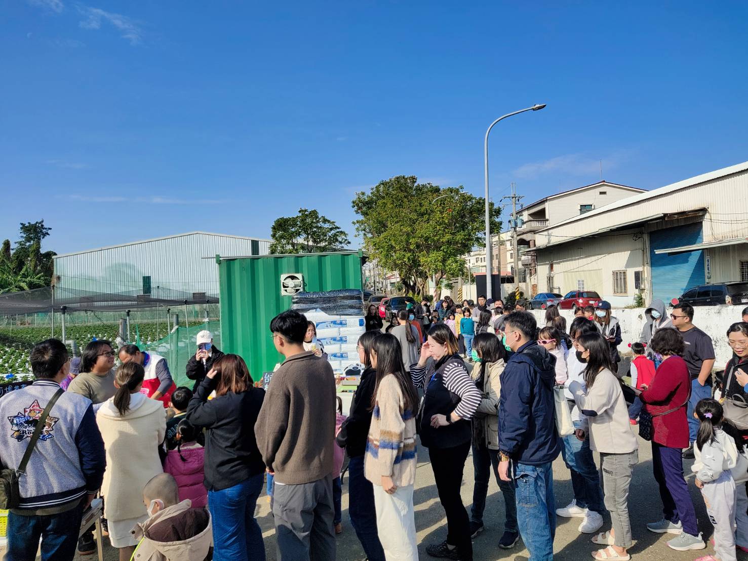 河堤草苺園1/11日10點首日開園讓民眾入園,時間未到,以有愛好者破不及待9點就來排隊等待如園採購,時間一到已約300多人湧入。首開園約1小時紅透的草莓被掃購一空。
