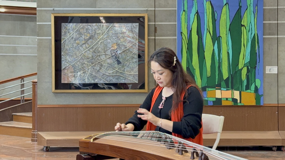 開幕式特別邀請知名古箏演奏家黃菁珊現場演出,以悠揚樂音呼應畫作意境,交織出視覺與聽覺「油然而生」的藝術共鳴。活動中,李賜鎮理事長並慷慨捐贈其作品〈春吟〉予建國科技大學典藏,象徵藝術精神的延續與教育文化的深耕。
