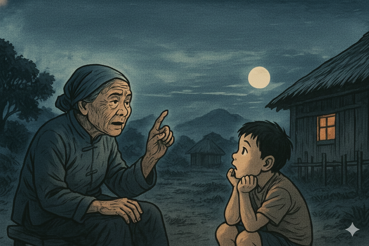 勝伯姆摎我姆講,以早有个 娘人,盡在過,常分老公打,家娘照倈仔轉,常乜蹧蹋酷毒(zàu tàd kù tùg)佢,佢一下閼著,想毋開,擎支刀仔佇該綠竹園割喉嚨頦自殺。極可能係刀仔毋利,割著又痛,割又無割利,痛到有聲噭到無聲,血出到忒正痛到死。死後痛苦个陰魂不散,逐日臨暗仔就會噭到天光,該噭聲,一直毋知經過幾多年正無過聽著。聽人講自殺个人會佇陰間受苦受難,盡難投胎轉世。該割頦鬼在生恁在過,到陰間也恁在過,正式毋知麼个命,前生毋知做麼个積惡,正會恁樣,實在還出差世哪!