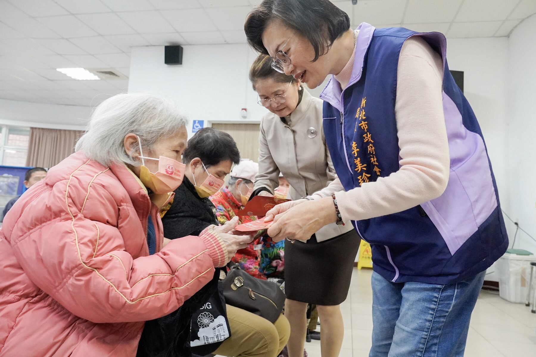 ▲天慈功德會83年起致力服務弱勢家庭,理事長鄭呂碧雪(左)感謝在地多位善心人士共同響應。(圖/新北市社會局 提供)
