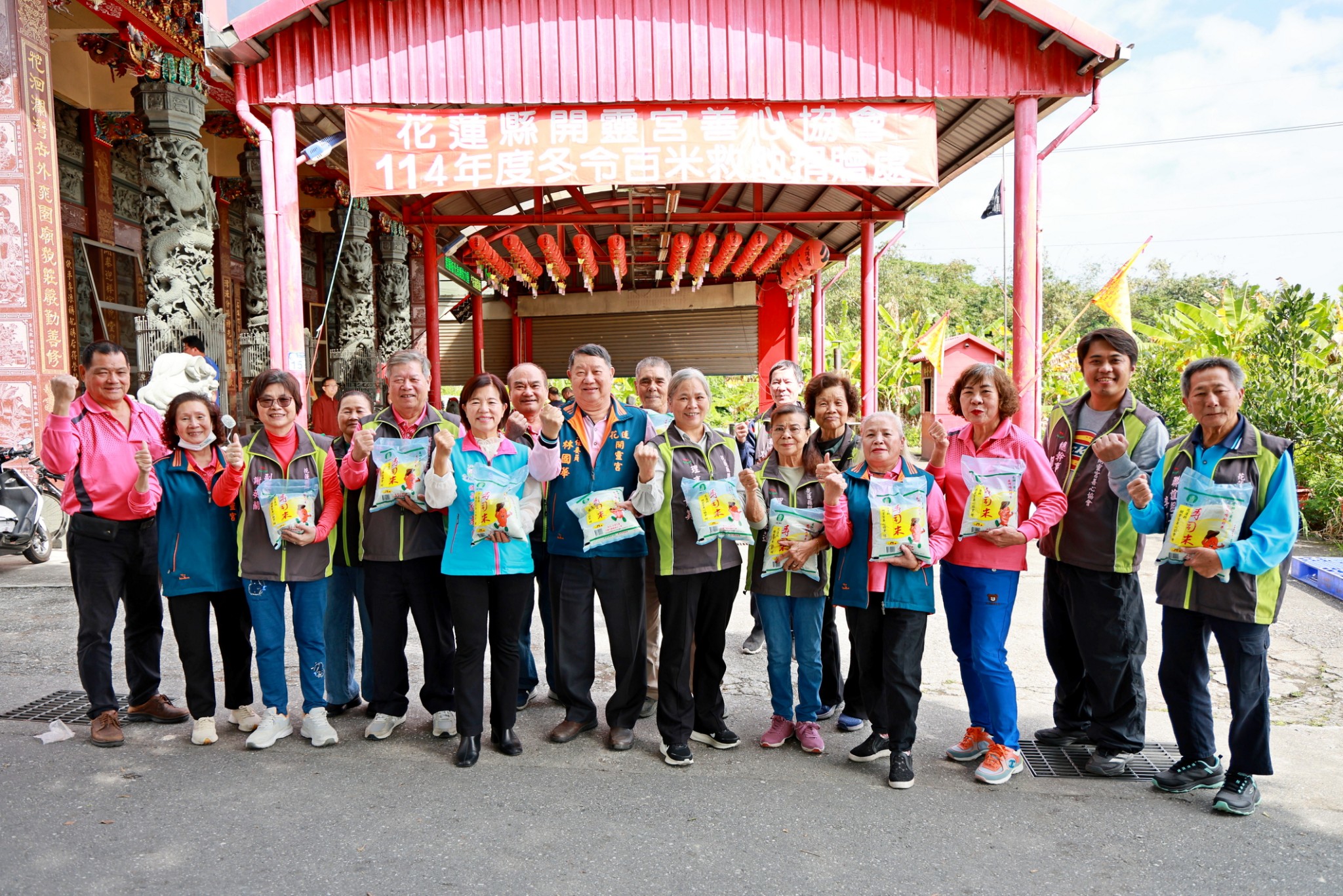 開靈宮主祀開漳聖王,15年前廟方依神明指引,每年舉辦冬令救濟,這項優良傳統延續至今從未間斷。理事長林世震表示,開靈宮善心協會匯聚了眾多志同道合的會員與十方信眾的愛心,每年募集萬斤以上的白米分送至各鄉鎮。相信透過吉安鄉公所平台,能最有效率地將這份來自神明的庇佑與信眾的愛心,精準送達真正需要的家戶手中。