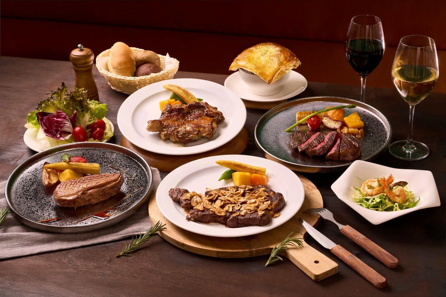 想犒賞自己的老饕還可選擇「頂級臻味炙燒和牛」,其精選以日本和牛與安格斯黑牛配種的「美國極黑和牛」,同時具有日本和牛的細緻油花與安格斯黑牛的鮮明肉香。主廚採煎、烤、靜置再反覆煎製上色繁複工序,以完美鎖住肉汁,品嚐細緻肉質、豐富油花與柔嫩多汁的鮮甜口感。此外,TOK牛排屋提供多樣牛排主餐供挑選,包括,肉質軟嫩的「主廚嚴選菲力牛排」、肉香濃郁的「典藏紐約客牛排」或油花均勻的「極上火烤肋眼牛排」等。