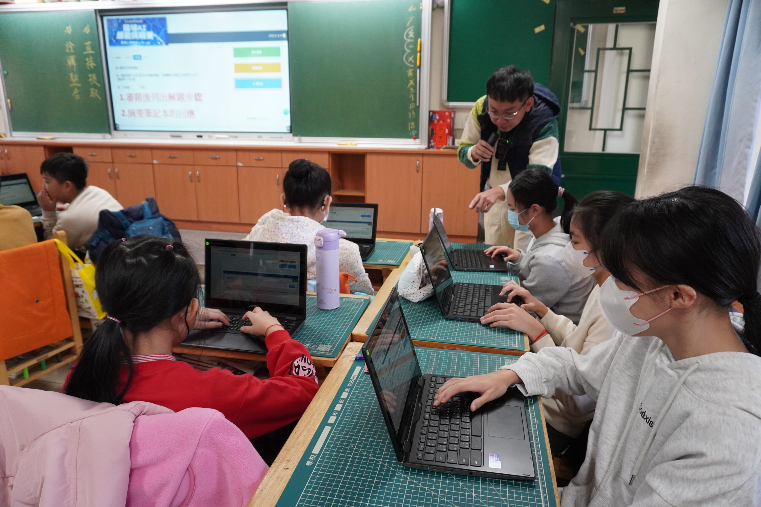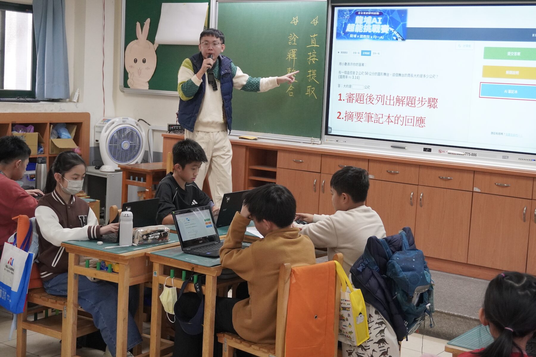 ▲教師引導學生使用AI筆記本。(圖/新北市教育局 提供)
