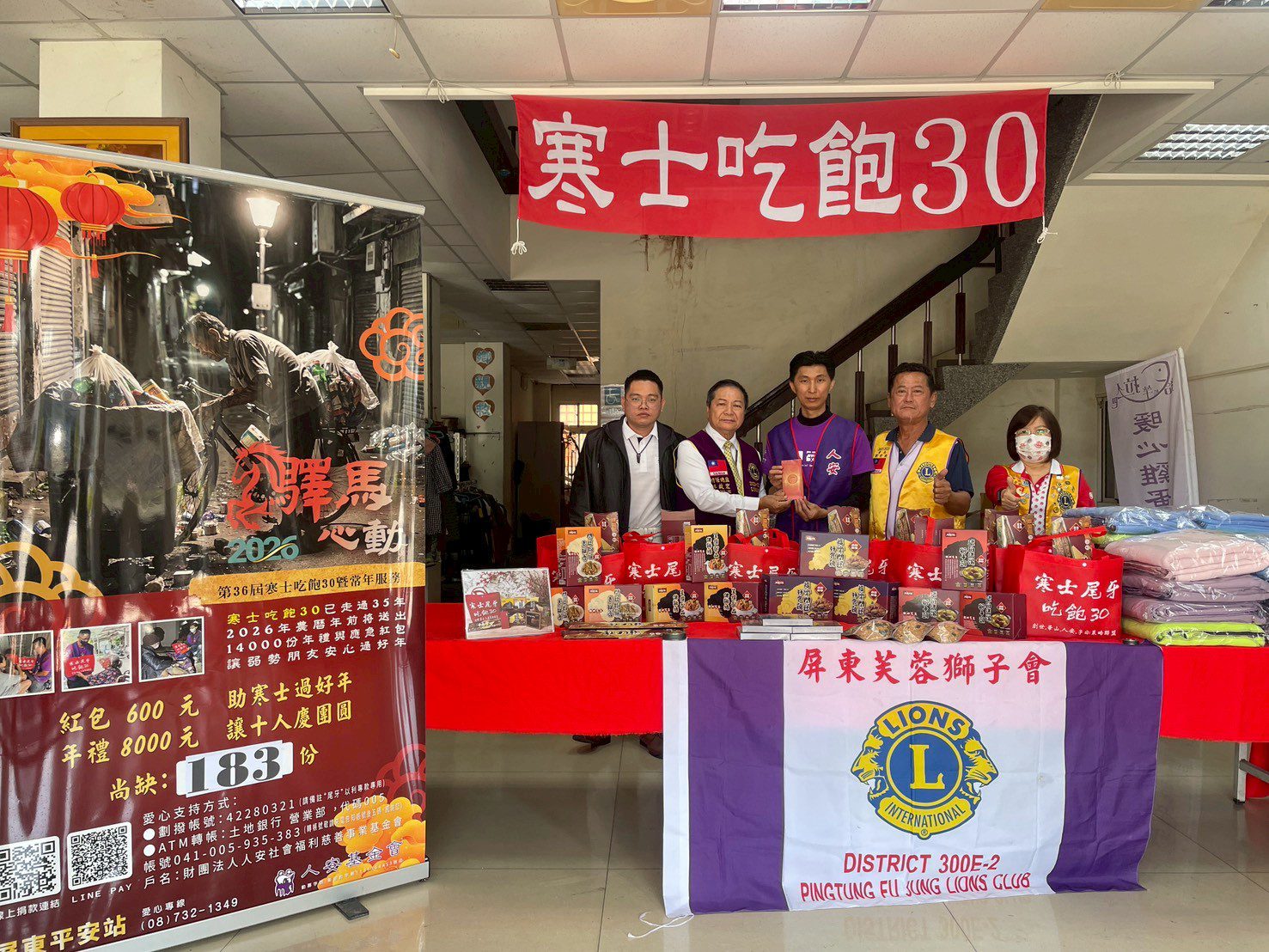 活動當天,屏東芙蓉獅子會大力支持「寒士吃飽30」活動,現場劉建國主席也邀約前任總監李啟宏、芊鎰有限公司、恆記麻油認捐40份尾牙年禮,與寒士們一同介紹今年七道豐盛年菜,席間氣氛溫馨,獅友們也逐一親手發送禦寒毛毯。寒士感慨表示,每年的新年願望不求富貴,只求「活下去」,而這份熱騰騰的飯菜與毛毯,正是他們熬過寒冬最重要的支柱。