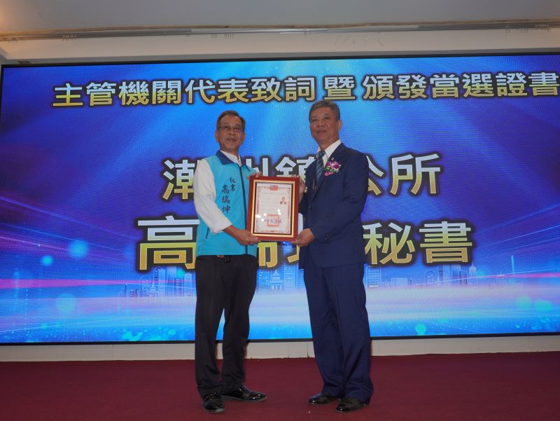 ▼潮州鎮機要秘書高瑞坤代表地方政府,將當選證書頒發予陳建霖,完成交接儀式的核心環節。(圖/記者何勁陞)