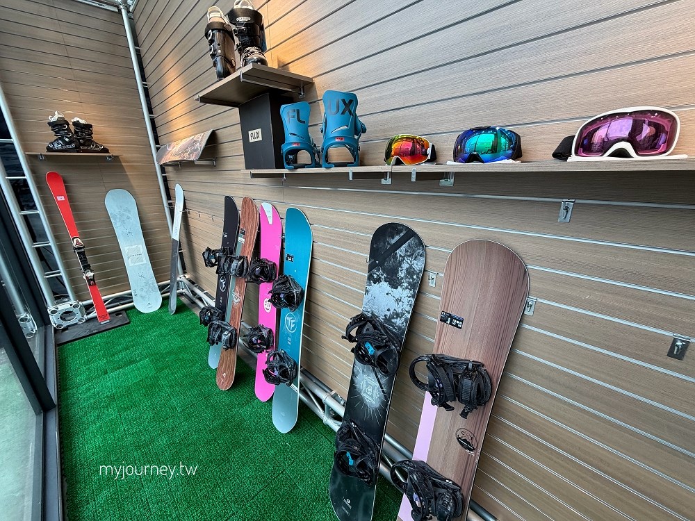 外觀看來低調樸實,進到裡頭卻別有洞天,牆面鋪滿雪場照片,展示各式雪具,一秒讓人幻想自己即將在白雪世界帥氣滑行——直到課程開始,幻想立刻破滅。