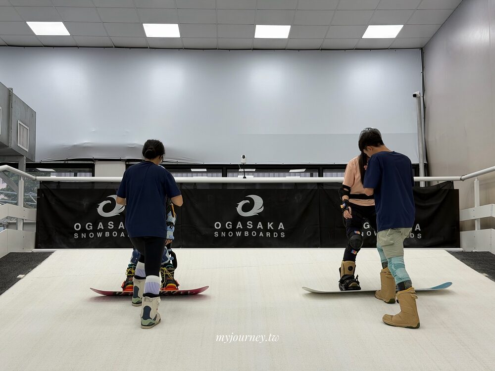 最實用的是纜車教學,上車要讓雪板與座椅平行、順勢坐下,下車時板子朝前、身體微傾滑離出口,這些若沒事先練過,到了真正雪場很容易手忙腳亂。至於單板課程,則從扶桿練平衡開始,反覆調整姿勢與核心出力,等抓到節奏放開雙手,那一刻真的有種「原來我也行」的小成就。