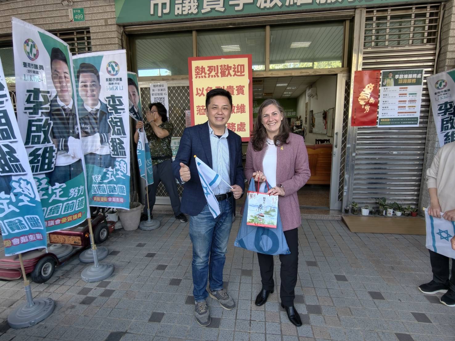 台南市議員李啟維很感謝卓健誠執行長為台灣和以色列兩國的情誼關心奔波,做了最有溫度的國民外交,也彌補了政府的不足,這次除了舉辦意義重大產業科技的交流以外,也順路和大使至服務處拜訪,讓服務處同仁與有榮焉,他們會緊抓上帝效法以色列精神守護台灣,為世界和平盡一份心力!