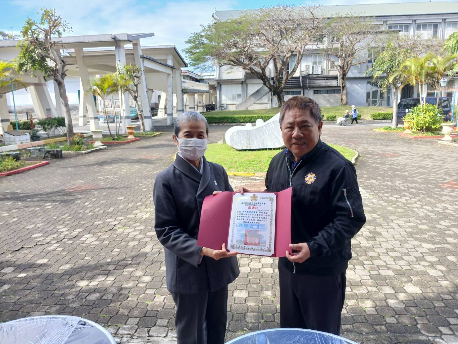 ▲花蓮榮家主任(右)贈狀感謝顏惠美師姊(左)。(圖/花蓮榮家提供,下同)