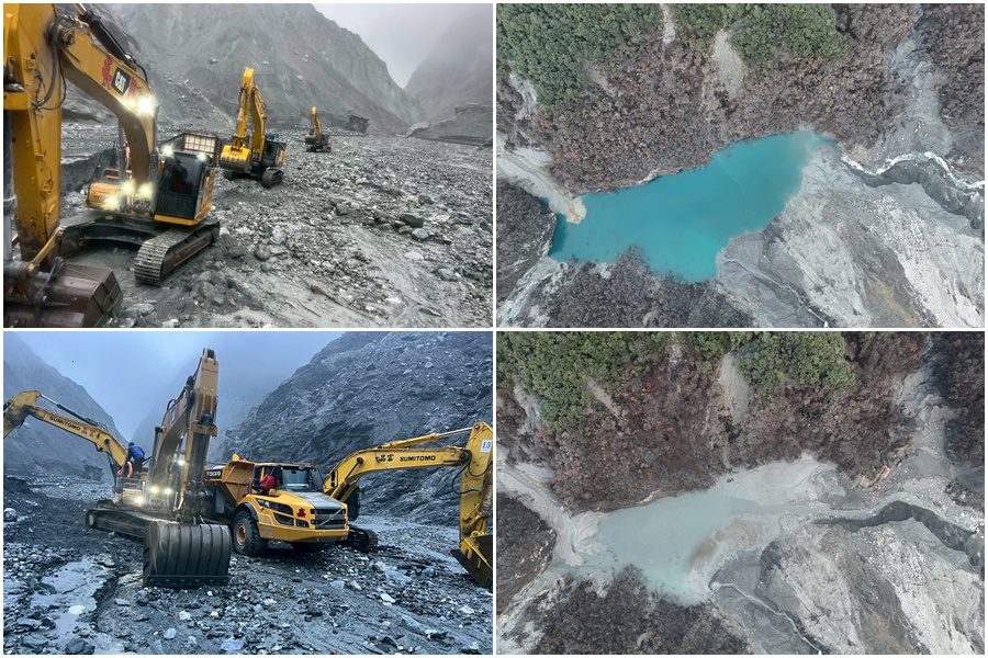 由於山上崩積土砂仍具崩落潛勢,施工人員原訂下撤路線1月11日在距離溢流口下游1.5公里的V型河谷上邊坡,發生大約18公頃的土石崩坍,造成河道束縮,影響下撤安全,仍由空勤總隊直升機將所有人員運回平地,施工機具則暫留壩區現場,以備日後不時之需。
