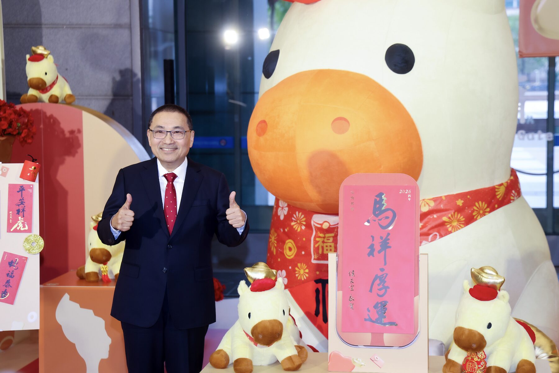 為迎接2026年馬年到來,新北市長侯友宜(27)日親自發布新出爐的「馬祥厚運」春聯,向市民傳遞滿滿的新年祝福。由新北青年書法家楊承叡與設計師王景民攜手創作的新北「馬祥厚運」春聯,以吉祥詞意與台語巧思,為新春注入滿滿祝福。