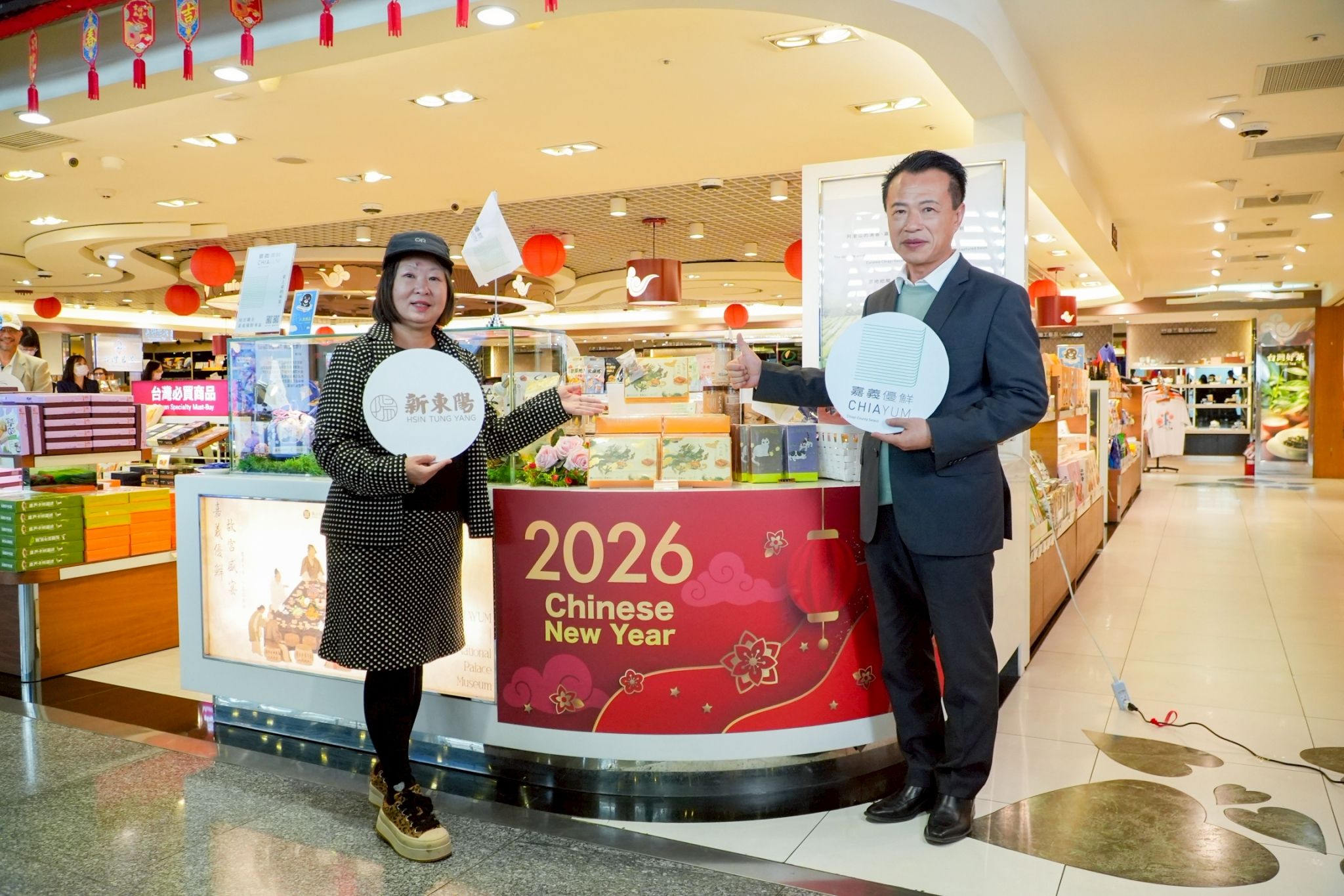 嘉義縣政府持續擴大「嘉義優鮮」在觀光通路的能見度,與國立故宮博物院聯名商品進駐桃園國際機場第一航廈,在新東陽台灣特色商品館設立「嘉義優鮮專區」。出國旅遊、返鄉探親的國內外旅客,在國門前即可選購兼具文化意象與在地風味的嘉義特色伴手禮,搶攻新春送禮與旅運消費商機。