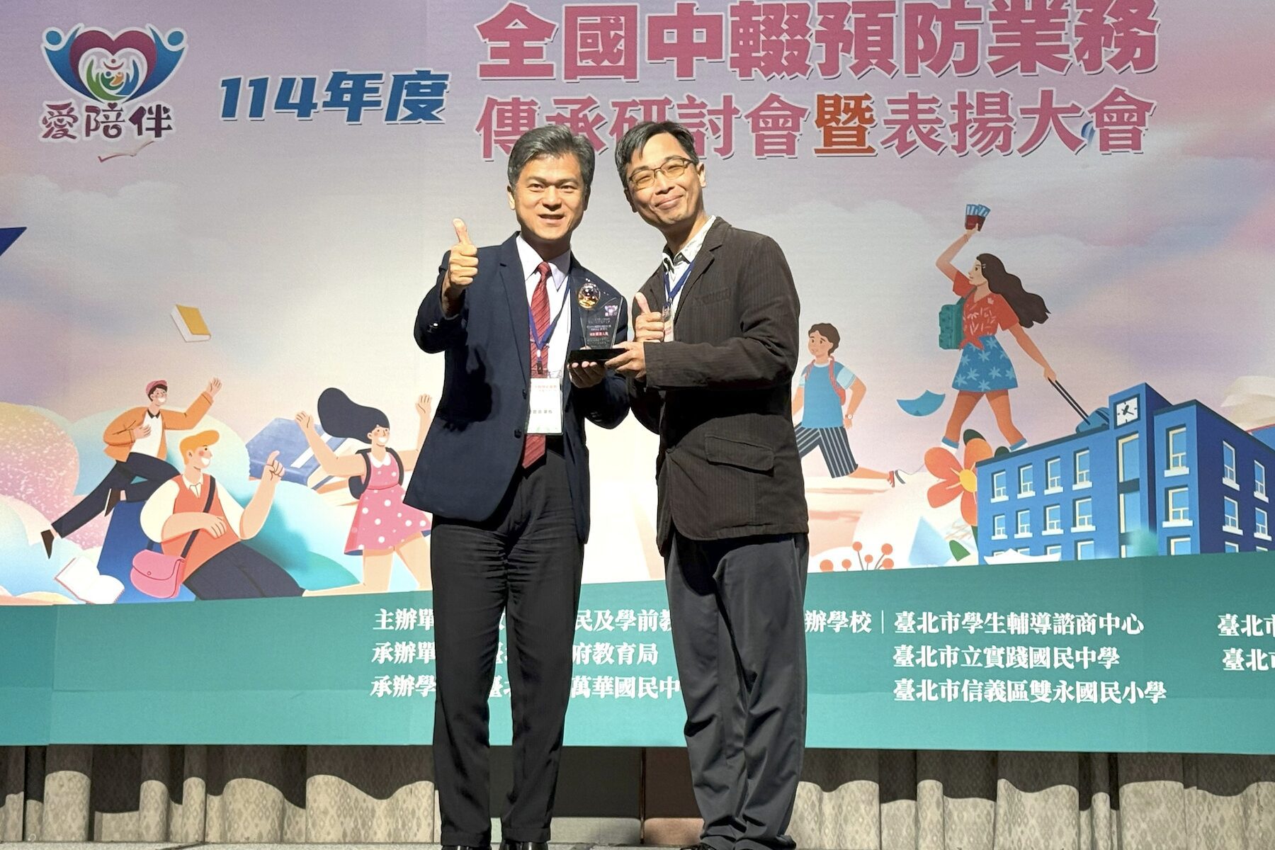 教育局指出,本次獲獎的績優單位包含丹鳳高中、正德國中、鳳鳴國中,以及中和區、土城區、永和區公所與市警局少年警察隊等共7個單位,展現跨校、跨局處、跨專業的合作量能,共同織起緊密、穩定的支持網絡。