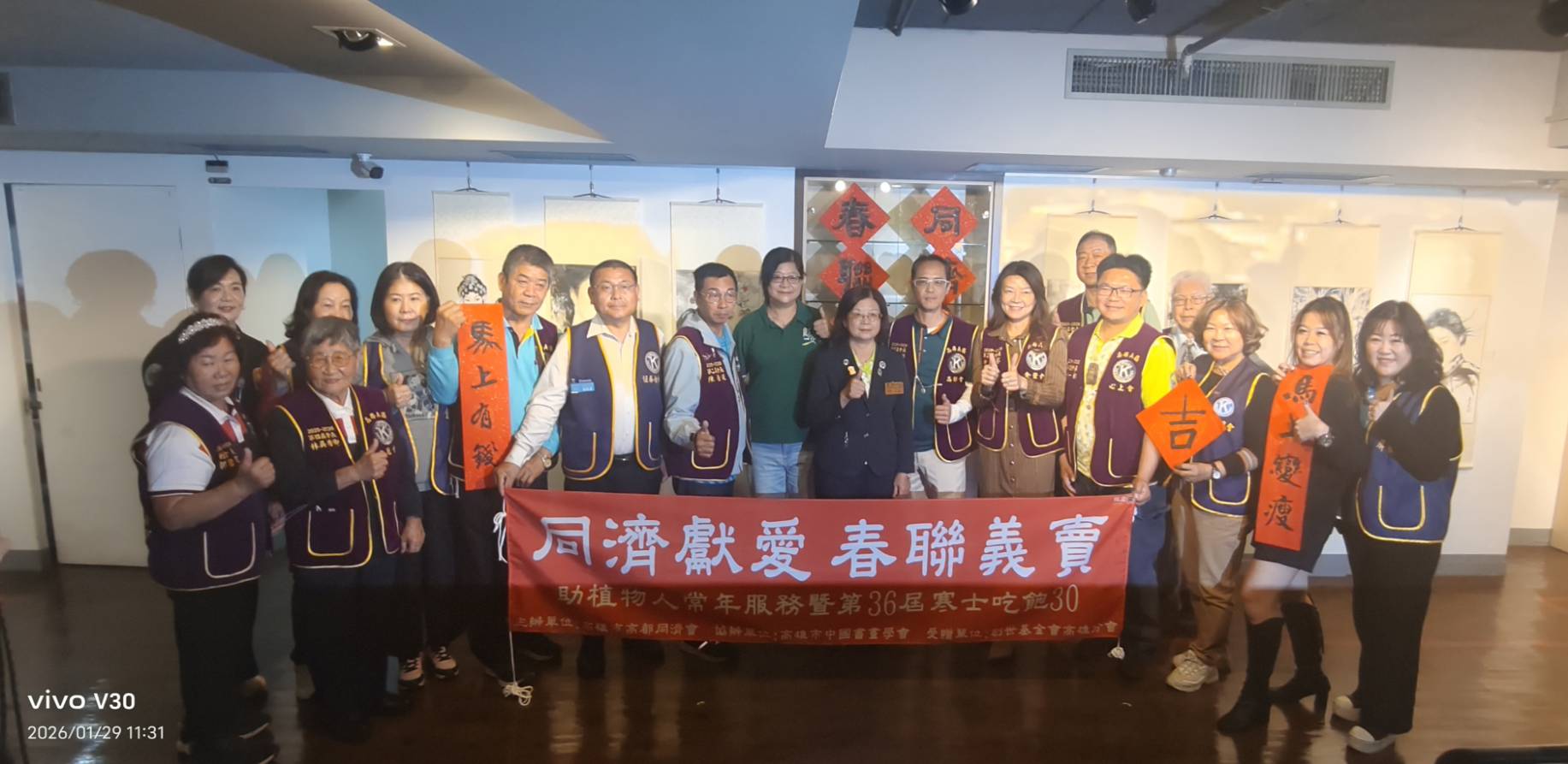為了讓年節關懷不再只停留在口號,高都同濟會1月29日與創世基金會高雄分會,在高雄市中國書畫學會會館舉辦「書法義賣助送禮到家」公益行動,將古老書法藝術化為實際力量,支持創世「植物人常年服務暨第36屆寒士吃飽30」活動。活動當日會場熱烈義寫義賣,不僅募集善款,更凝聚社會愛心,讓弱勢家庭在過年時獲得溫暖陪伴與實質資源。