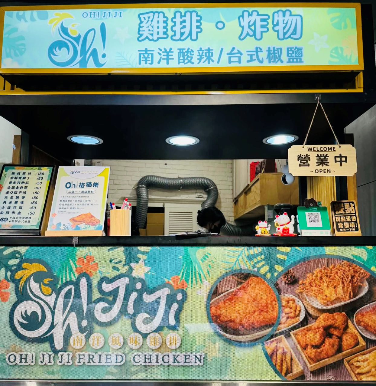 不同於厚重油香的傳統雞排,OH!JiJi以南洋風味為靈感,透過專屬醃漬技術與風味粉調配,使雞排在保有酥脆口感的同時,更顯清爽耐吃、不易膩口。搭配金Q甜不辣、金酥酥米血、金脆金針菇、黃金脆薯、金綿豆腐與黃金雞塊等多款炸物,形成豐富的組合選擇,滿足不同消費情境。