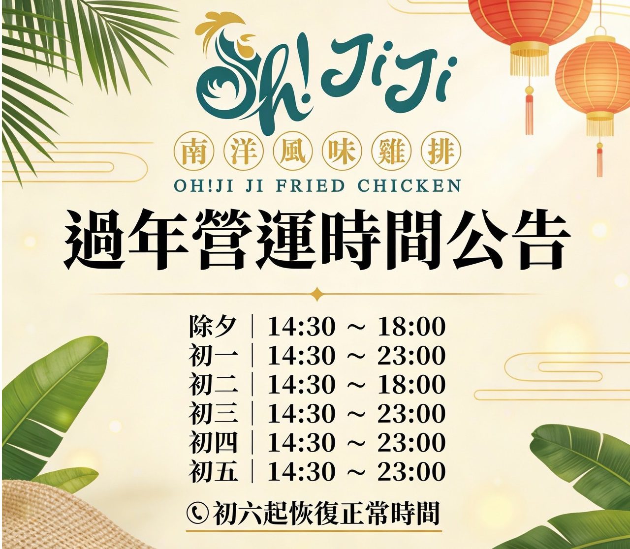 配合農曆新年到來,OH!JiJi社頭店也推出「新年到好運到,轉轉樂好運轉不停」活動,自2月1日至2月15日止,凡購買脆皮雞排,即可現場參加轉盤活動,立即抽獎、直接帶走獎品,為新春增添驚喜與熱鬧氣氛。業者也期待透過活動回饋鄉親支持,與社頭一同迎接嶄新的美味一年。
