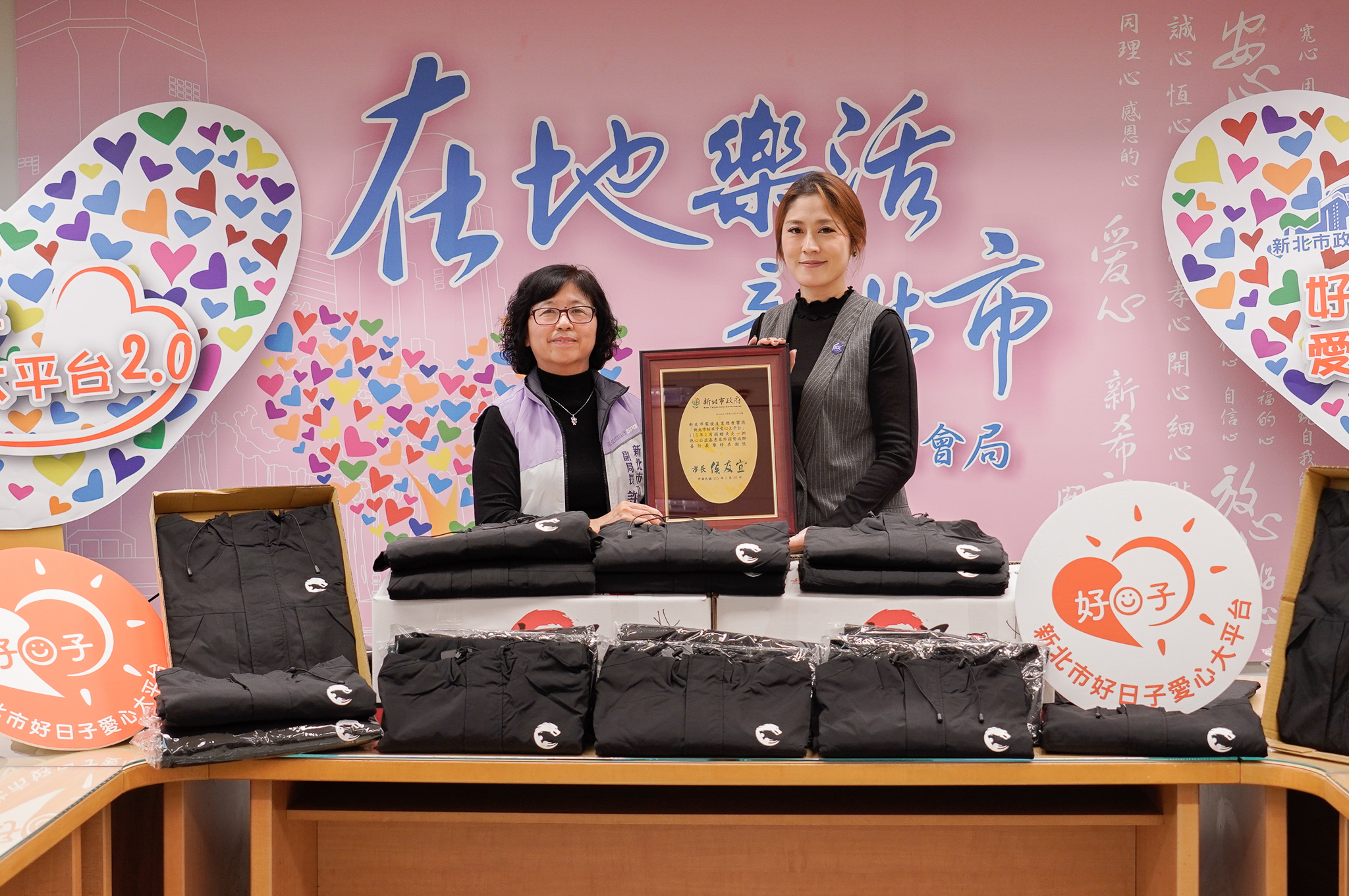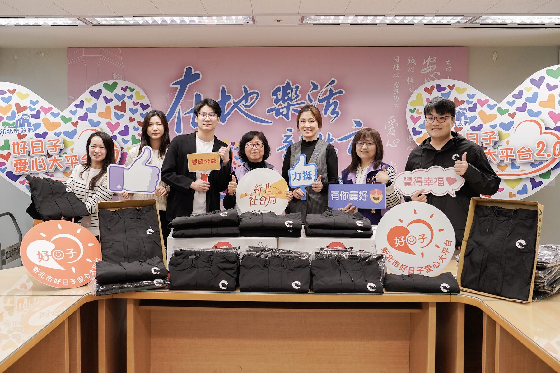 ▲鍇睿國際數位捐贈的電競外套設計非常具有現代感,有隱藏式深口袋,防風防雨又保暖,年輕人穿著有活力,長輩穿起來也更帥氣。(圖/新北市社會局 提供)