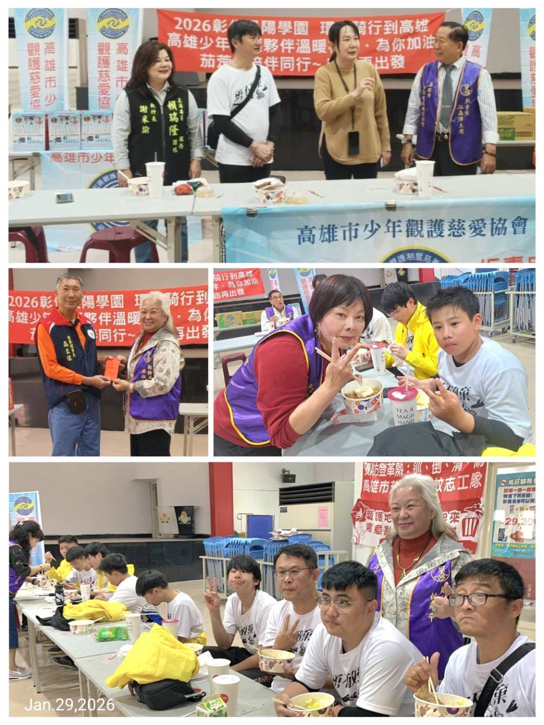 1月28日單車隊抵達高雄茄萣區時,受到當地人士熱情接待。茄萣區公所區長賴美娥在抵達典禮中肯定所有青少年展現勇於挑戰、努力不懈的精神,並向所有參與者致上最真誠的祝福。高市少年觀護慈愛協會也在現場準備豐富的補給品,包括雙併中餐、痠痛貼布、手搖飲料、運動飲料及蔓越莓酥等,讓遠道而來的青少年在體能恢復上能獲得即時支持。