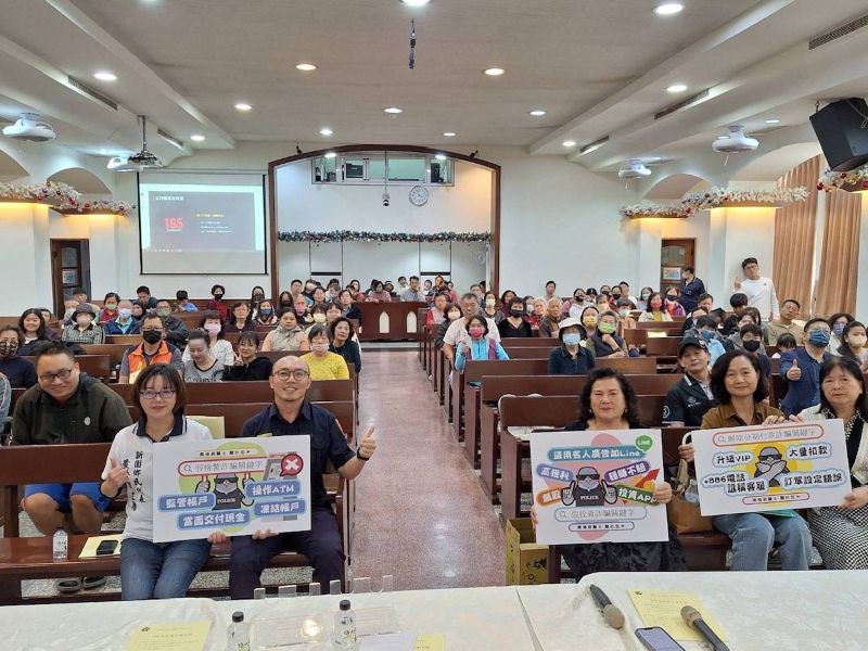 【記者何勁陞/東港報導】 東港警分局興龍派出所近日於新園鄉鹽洲村長老教會、五房村社區發展協會及港西村善良宮等舉辦活動現場,宣導識詐反詐騙及交通安全觀念。
