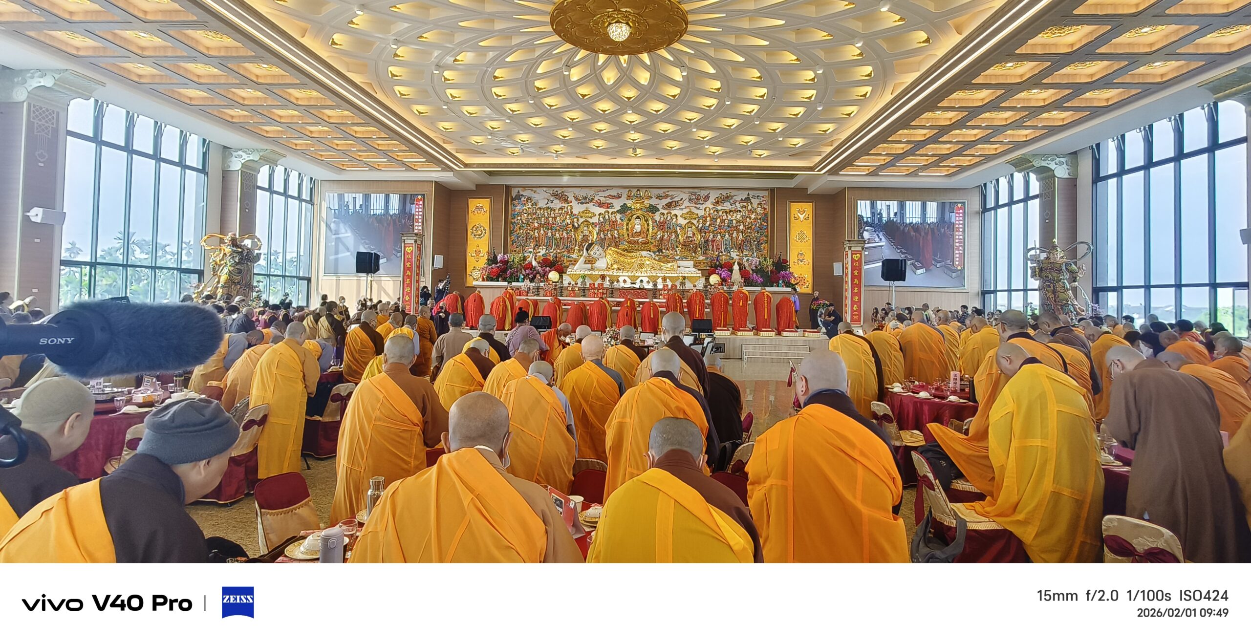 法會現場莊嚴肅穆,諸山長老與法師帶領大眾恭誦《八吉祥經》,信眾雙手合十、虔誠祈禱,誦經聲回盪殿堂,展現宗教安定人心的力量。會場內千盞祈福燈依序點亮,象徵光明、希望與新年的美好祝願,場面溫暖而感人。