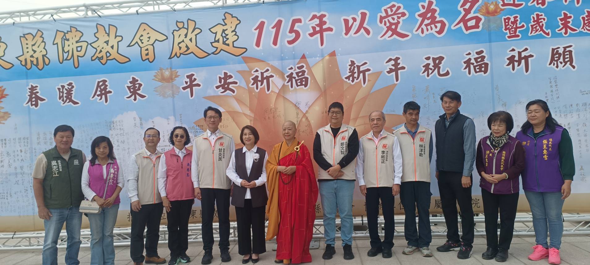 周春米縣長致詞時表示,聯合祈福法會已邁入第12年,每年吸引約5,000人跨宗教參與,充分展現宗教凝聚善念、撫慰人心的重要力量。縣府將持續推動地方建設與全齡照顧,期盼在善念祝福中,為屏東揭開平安祥瑞的新篇章。