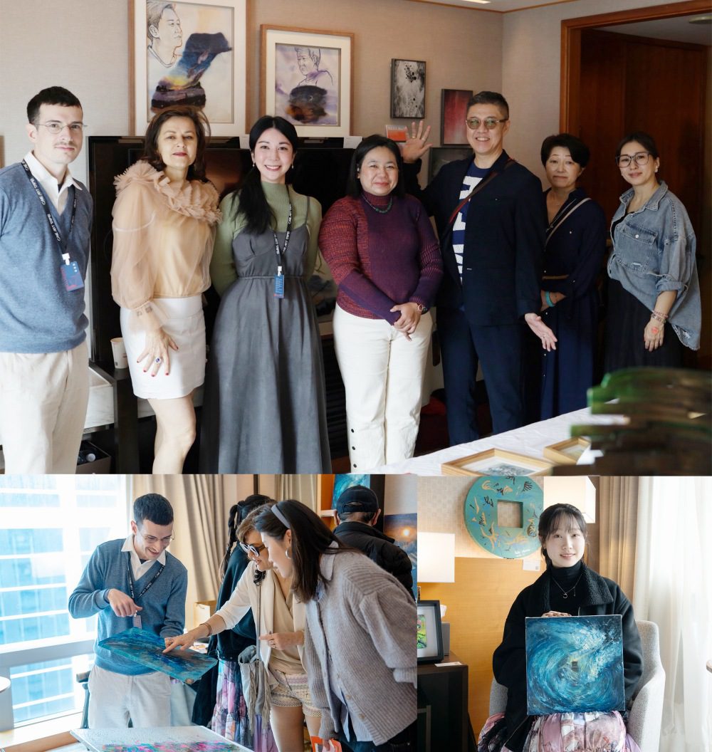 現場除了提供英語、法語與日語導覽外 ,更邀請到西語國家級翻譯 Chris,以精準的西班牙語為外國貴賓深入介紹,展現蝶映藝術經營國際高端市場的深度。從預展起,包含法國企業家Axel、蝶映藝術日本市場顧問謝超任,以及日本保養品品牌社長 Mayumi Tonosaki 、習慣健康創辦人胡孝新、一踢科技創辦人李湘頻、奇華智能董事長李孟居等貴賓皆親臨現場。蝶映藝術負責人辜琪鈞之領袖100導師——前台灣文化基金會副總裁楊淑鈴女士,亦與創作團隊面見,天使投資人謝佩芳亦出席,肯定由企業家精神驅動的學術實踐 。
