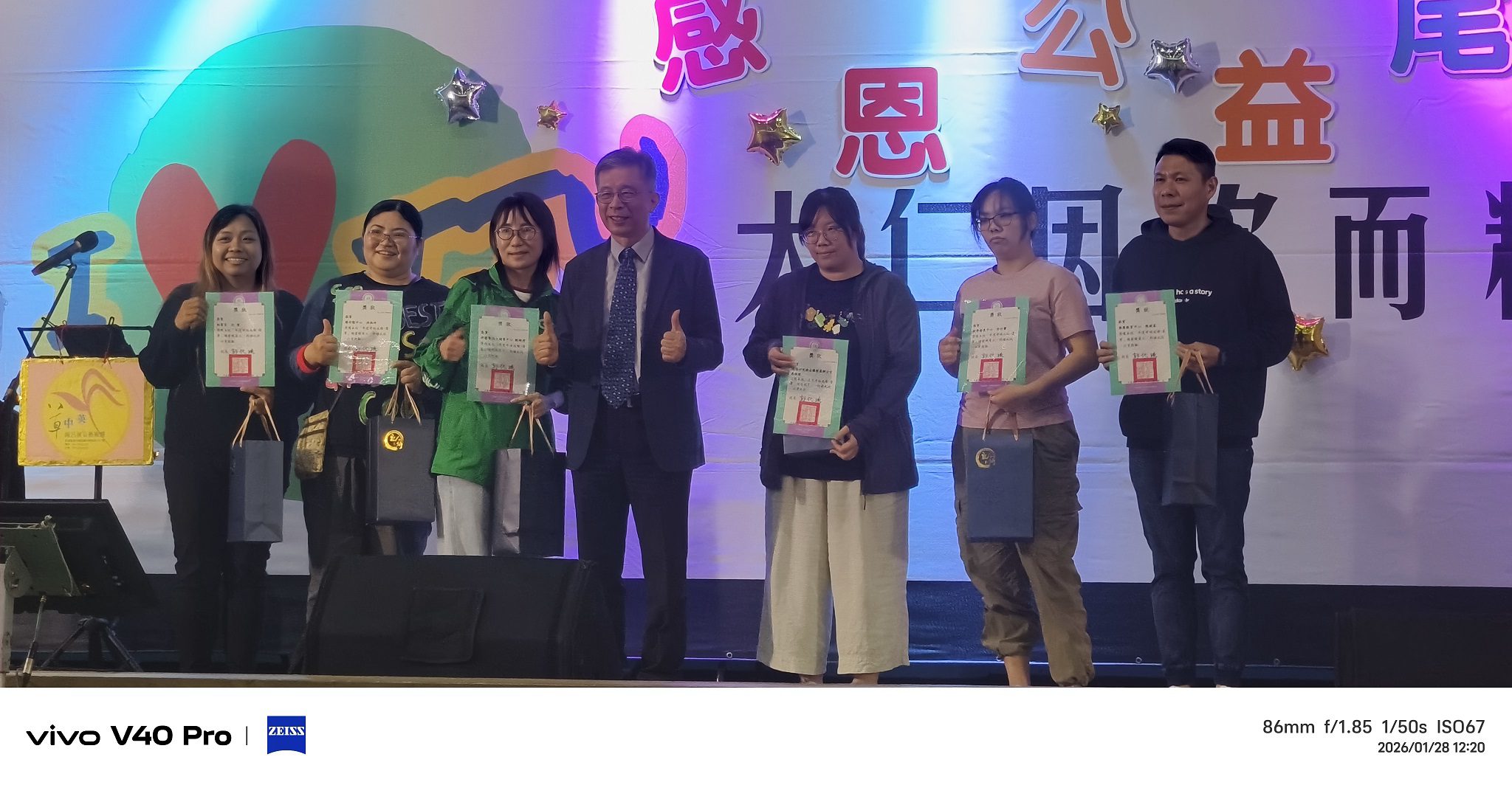 餐會中特別頒發即將退休教師紀念獎座,感謝其多年奉獻與傳承精神,並表揚114年度就學輔導績優教師及績優職員,肯定同仁在教學品質提升與行政服務上的專業付出,現場掌聲不斷,氣氛溫馨感人。