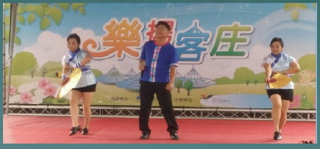 原鄉人-20▲高雄市原鄉人藝團歌唱老師老師劉彩仁(中) 大聲喊大家,共快來跳[客家番仔neˋ舞]噢voˊ!