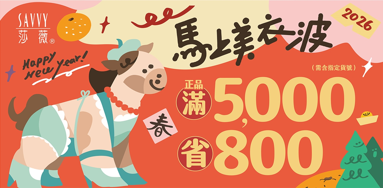 為了讓新年好運一路延續,莎薇同步推出兩大春節檔期活動,讓美麗與驚喜一次到位。2月7日至2月22日於莎薇百貨與量販通路推出「春節-馬上美衣波」,新朋友加入會員即可獲得300元購物金,消費再加碼贈送插畫家聯名木漿海綿,購買內衣一件即贈插畫家聯名紅包袋;同時祭出滿額優惠,正品消費滿5,000元現省800元(需含指定貨號)。