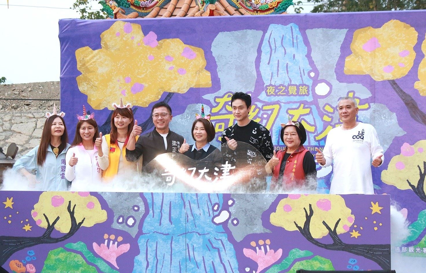 周縣長說,去年受颱風影響,大津瀑布步道一度嚴重受損而停辦,縣府歷經一年的修復工程與安全檢視,今年終於順利復辦,讓民眾能再次走進山林,安全欣賞夜間光影之美,感謝代言人劉冠廷回到家鄉力挺活動,讓「奇幻大津」更添亮點。