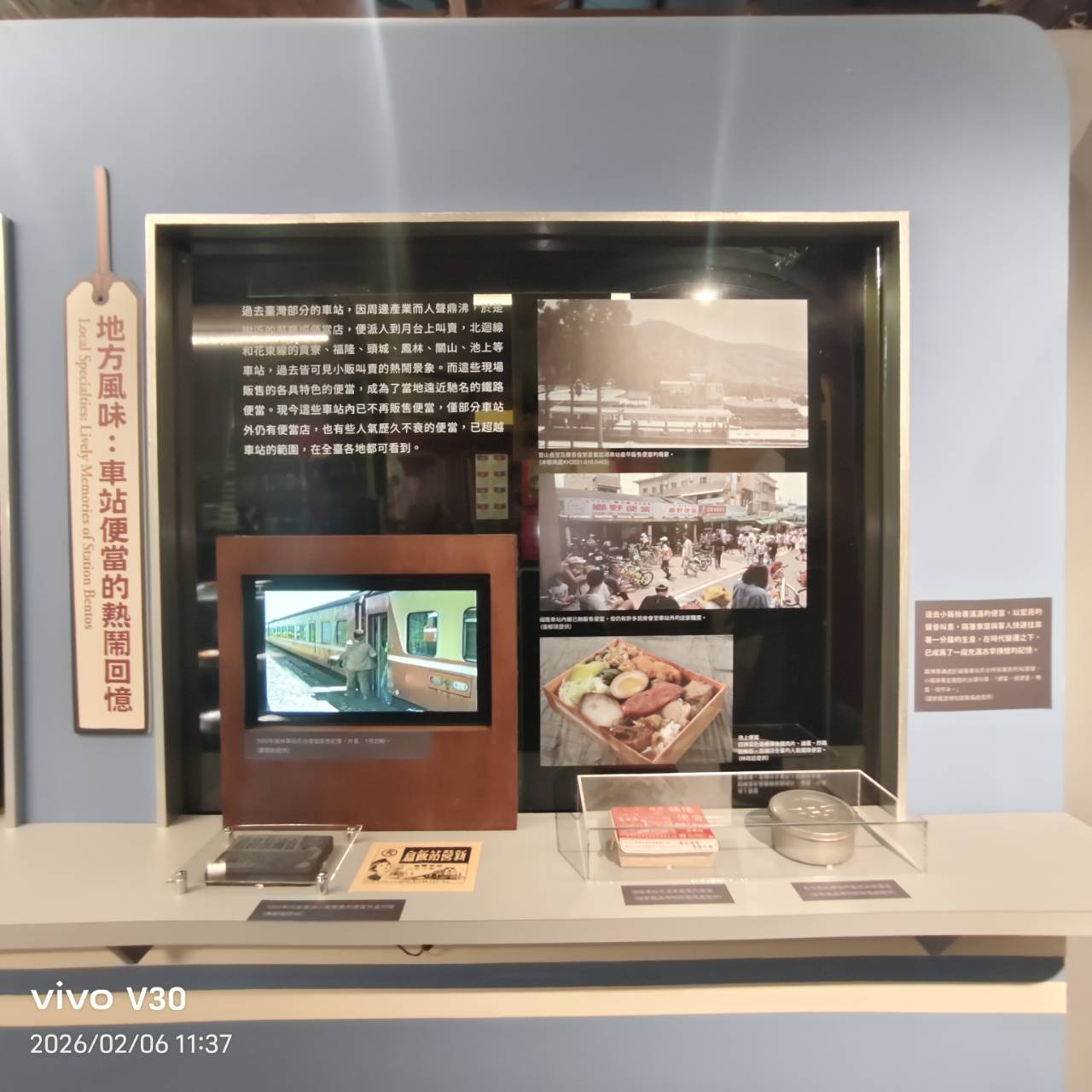 平價鐵路便當是臺灣旅途記憶的重要組成,這一單元回顧車站便當如何從地方風味走進大眾生活。透過經典排骨便當演變史、不同地區車站便當特色以及鐵路月台布景再現,觀眾能更具象地理解便當文化與本地飲食特質的深厚連結。鐵路便當在台灣已成為獨特文化符號,每年舉辦的鐵路便當節亦吸引大量民眾參與,展示了其在民間生活中的重要角色。