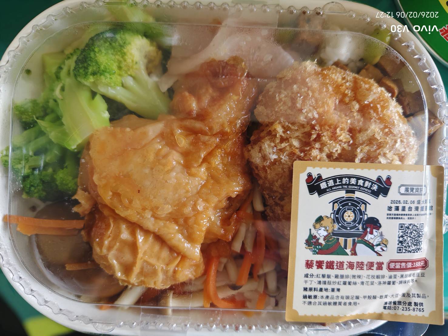 走進鐵道历史的同時,「吃」也是這次特展不可錯過的重點體驗之一。哈瑪星鐵道館與台鐵公司合作推出名為「藜饗鐵道海陸便當」的聯名限量便當,自 2月6日至13日 推出 每日限量60份,售完為止。每份188元,主菜結合 微辣烤雞腿排與炸花枝蝦排,搭配紅藜飯、台鐵經典滷蛋與配菜等,讓民眾在味覺上重溫鐵道文化的多重層次與旅途回憶。