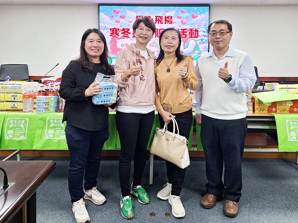 愛心飛揚寒冬送暖賑米活動也結合陳佳照紀念文化基金會、台南市登陸慈善愛心會、統亞電子、臺灣省會計師公會、港香蘭藥廠、培珍社會福利慈善事業基金會、台南市府城同心協會、好帝一食品有限公司、肯尼士有限公司等多個善心團體,共同募集超過三百萬元物資,展現社會各界長期支持公益、持續投入關懷的善循環。