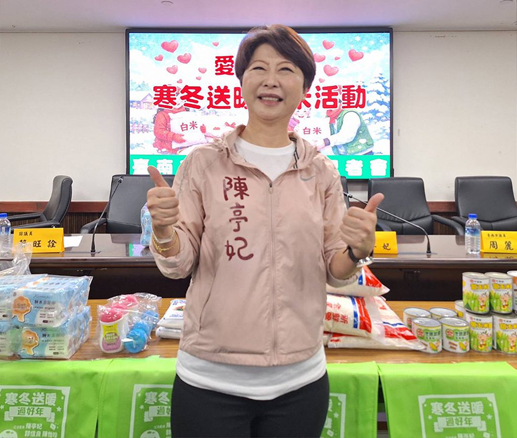 本次活動由陳亭妃委員、郭信良前議長號召,集結市議員陳怡珍、周麗津、吴通龍及蔡旺詮前議員等人共同響應,多年來持續以實際行動關懷弱勢族群,將服務與愛心落實在基層。今日活動記者會中,台南市登陸慈善愛心會理事長楊松榕、肯尼士國際有限公司董事長李耿誠等善心人士亦到場支持,象徵公私協力、齊心行善的溫暖力量。