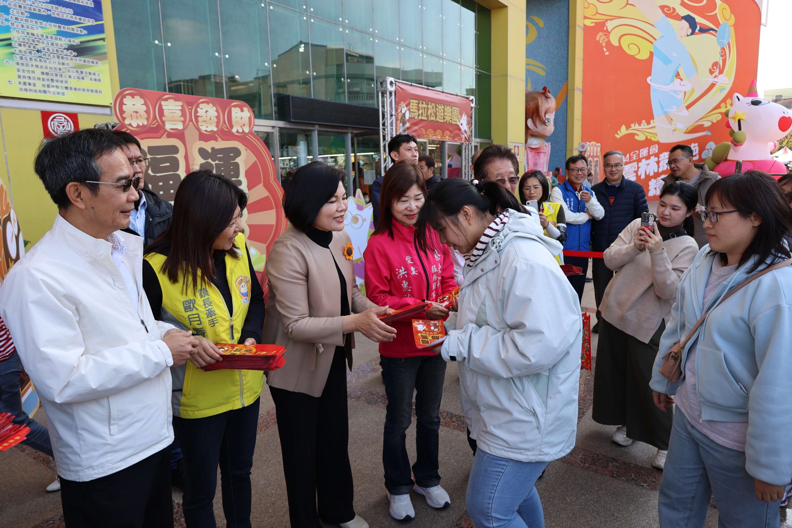 ▲縣長張麗善等人在現場發放應景的春聯帶動氣氛。(圖/雲林縣政府提供)