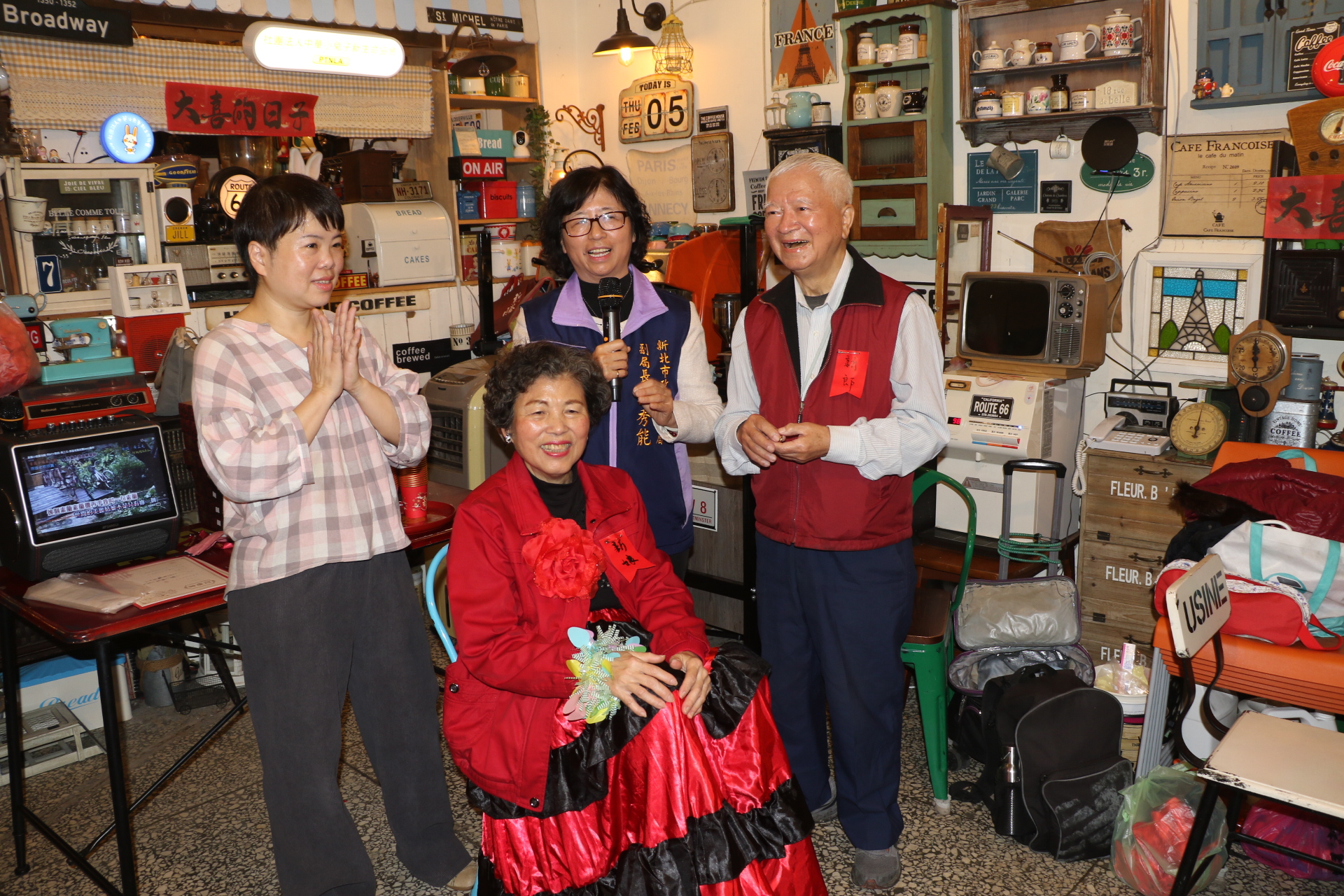 ▲社會局副局長許秀能受邀為正哥和寶姐祝福彼此相互照顧扶持,繼續在據點上課。 左1為「兔媽」林孟汝。(圖/新北市社會局 提供)