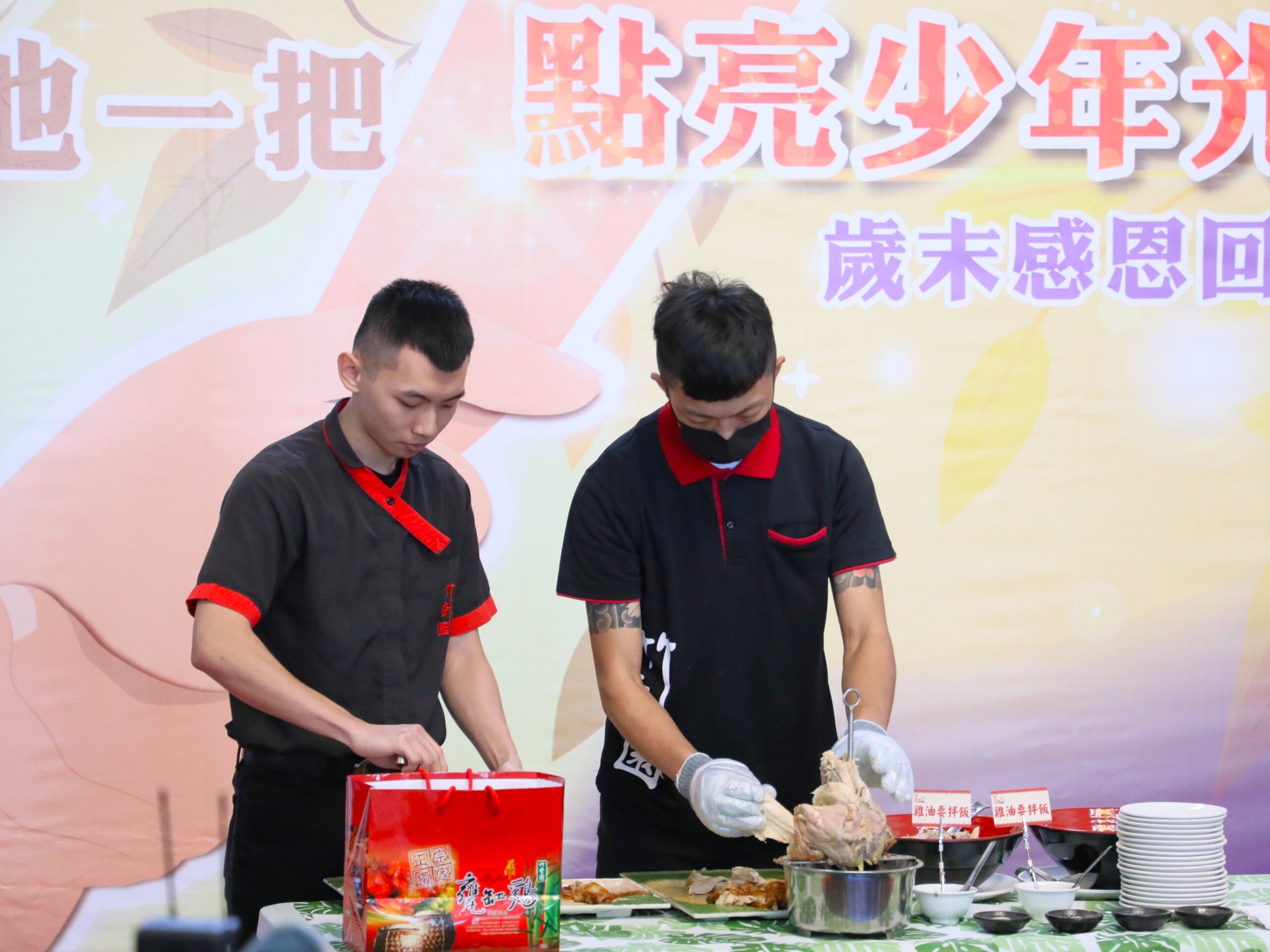 現場另一位少年代表則展示自己在職場上的學習成果,親自料理甕仔雞邀請縣長、警察局長及來賓品嚐,獲得一致好評與鼓勵。