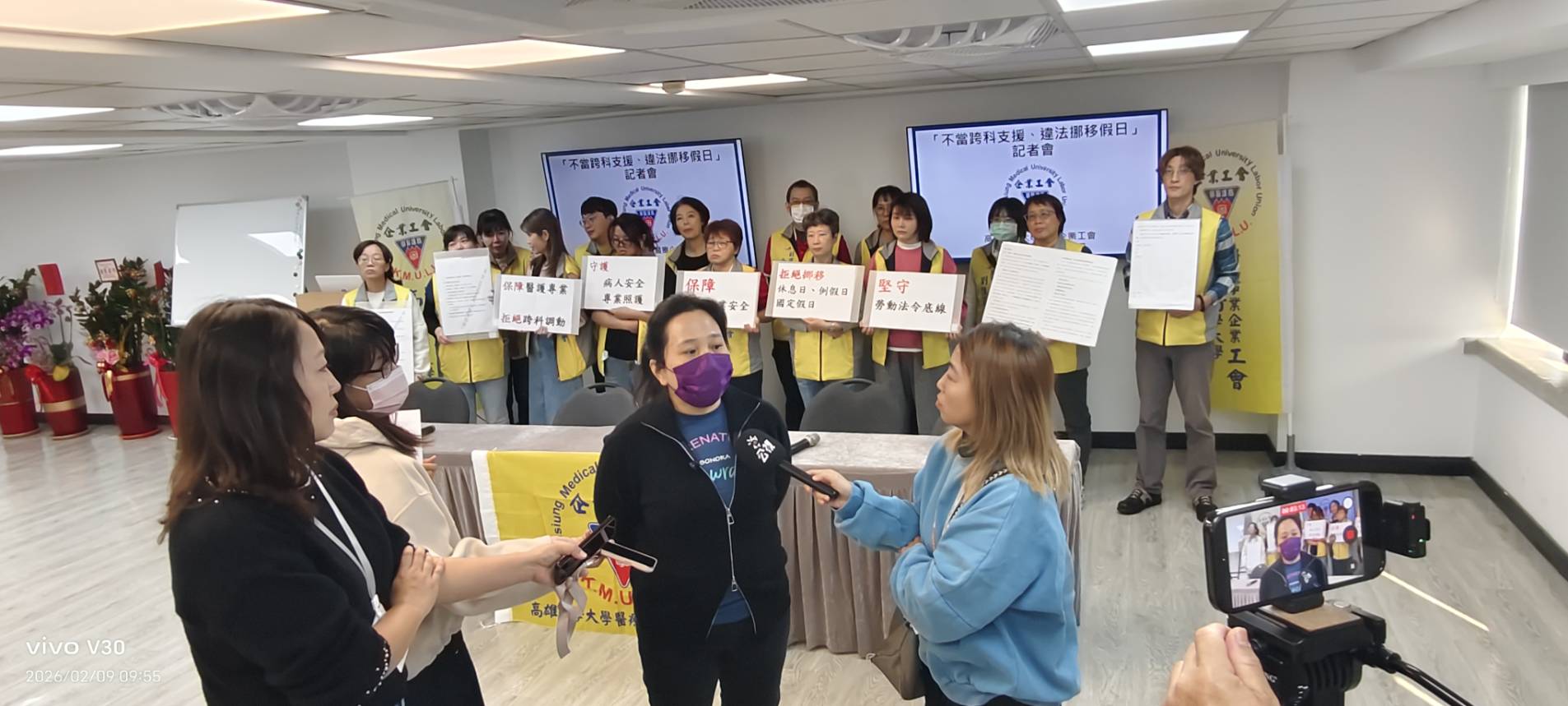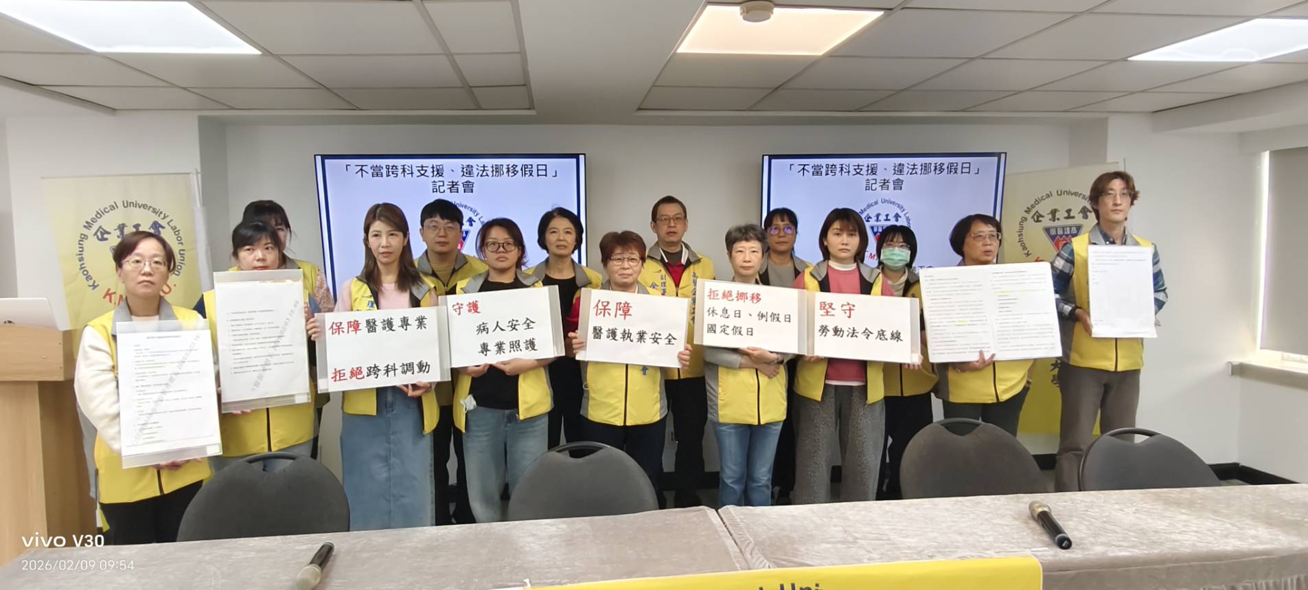高雄醫學大學醫療事業企業工會於今(2/9)日召開記者會,公開抨擊院方在人力調度、休假安排與跨科支援上的做法,認為這些措施不僅違背勞工基本權益,也危及病人安全與醫療品質。工會指出,護理人員應依專業分科服務,並享有《勞動基準法》保障的休假與工時規範,反對未經充分溝通即常態性跨科調動與在國定假日強制上班的安排。醫療勞資關係因而再度引起社會高度關注。