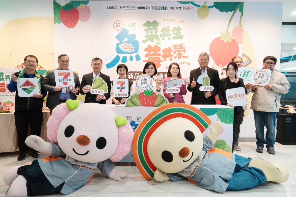 雲林縣政府持續推動永續與智慧循環農業,協助在地農業升級轉型、拓展多元銷售渠道,2/11日,雲林良品及保證責任雲林縣新湖合作農場與統一超商攜手合作,於7-ELEVEN台北總部門市舉辦「魚菜共生 魚莓共榮上市記者會」,推出季節限定商品「新鮮美姬草莓盒」,寫下超商銷售鮮果重要里程碑。新湖合作農場首創「魚塭型魚菜共生」永續農法種植草莓,栽植過程全程不使用農藥,邀請全台民眾一同品味香氣濃郁的在地新鮮草莓,為冬日增添幸福滋味。