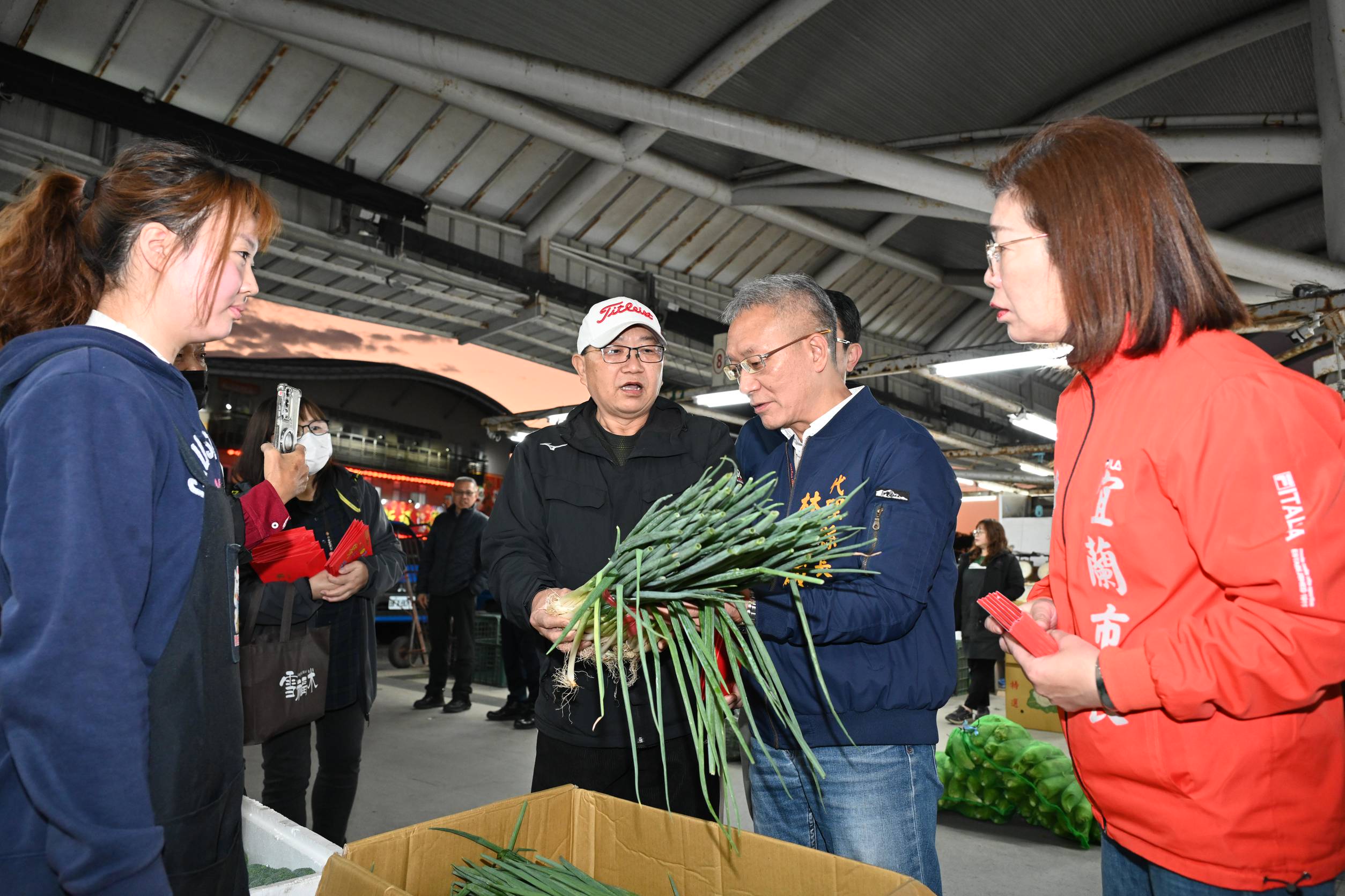 宜蘭縣代理縣長林茂盛11日前往宜蘭縣果菜批發市場,實地視察年節前農產品供貨情形,關心市場攤商備貨與營運狀況,確保春節前民生物資供貨穩定,讓民眾安心採買、歡喜過好年。