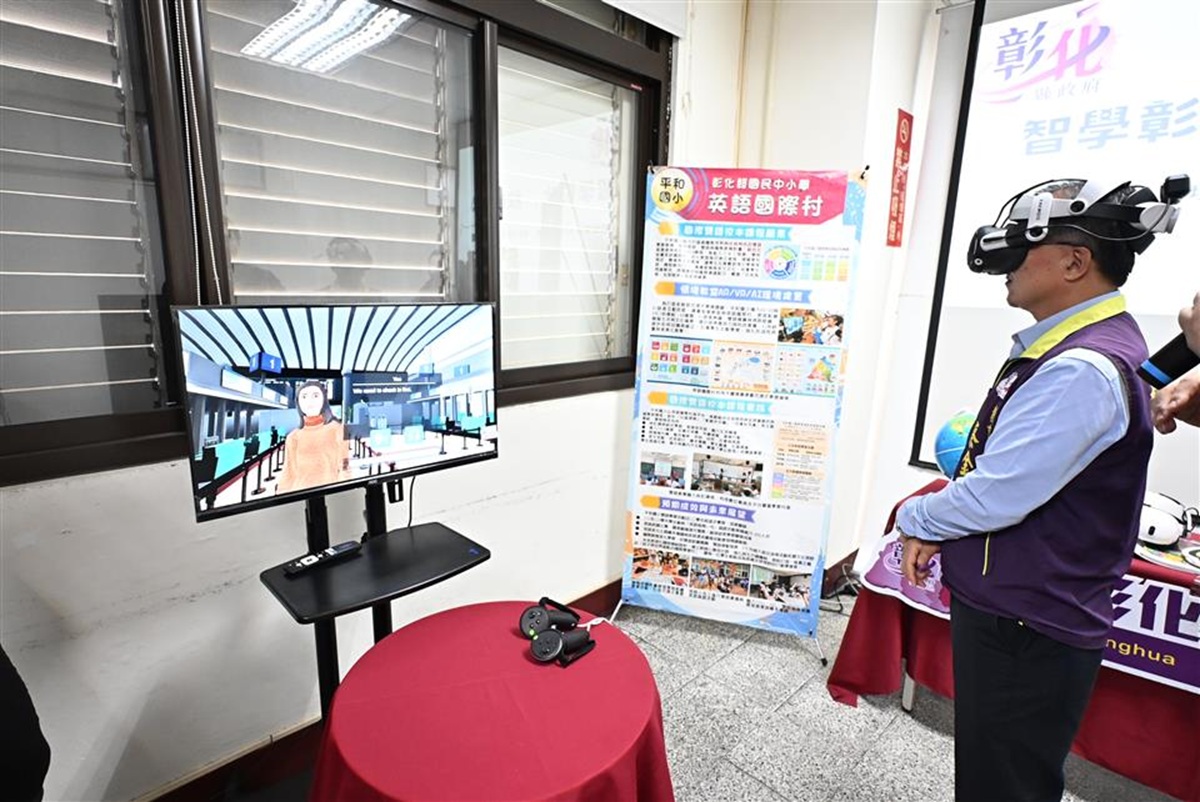 ▲114年彰化縣首創英語國際村,共有68所學校提出申請,透過AI情境教室及AR擴充實境與VR虛擬實境。(圖/記者蕭麗鳳攝)