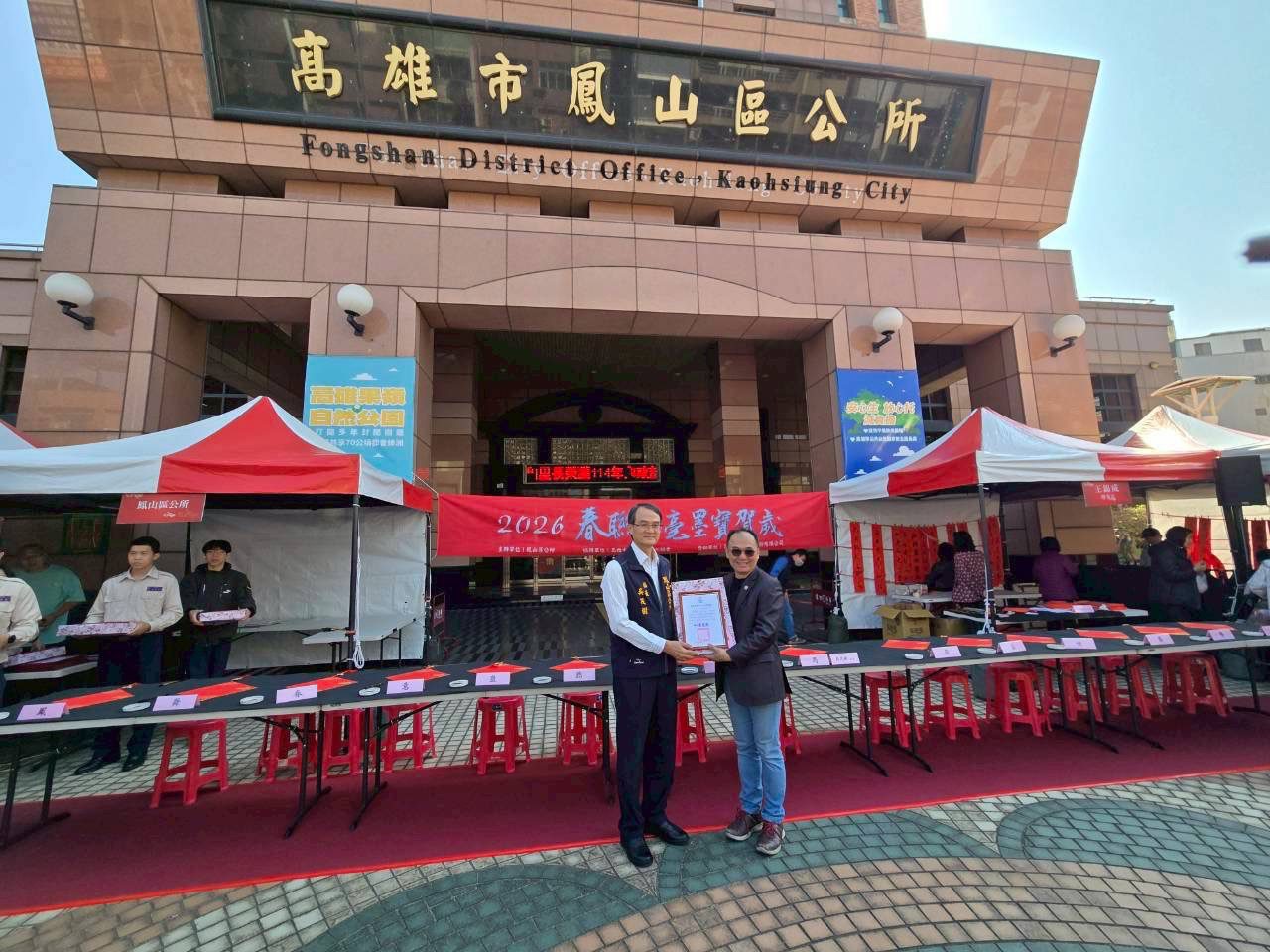 【記者吳奕/高雄報導】 鳳山區公所於2/12在鳳山區公所廣場舉辦「2026 春聯揮毫墨寶賀歲」活動,結合書法藝術展演與民眾互動體驗,現場墨香四溢,洋溢溫馨熱鬧的新春氣氛。