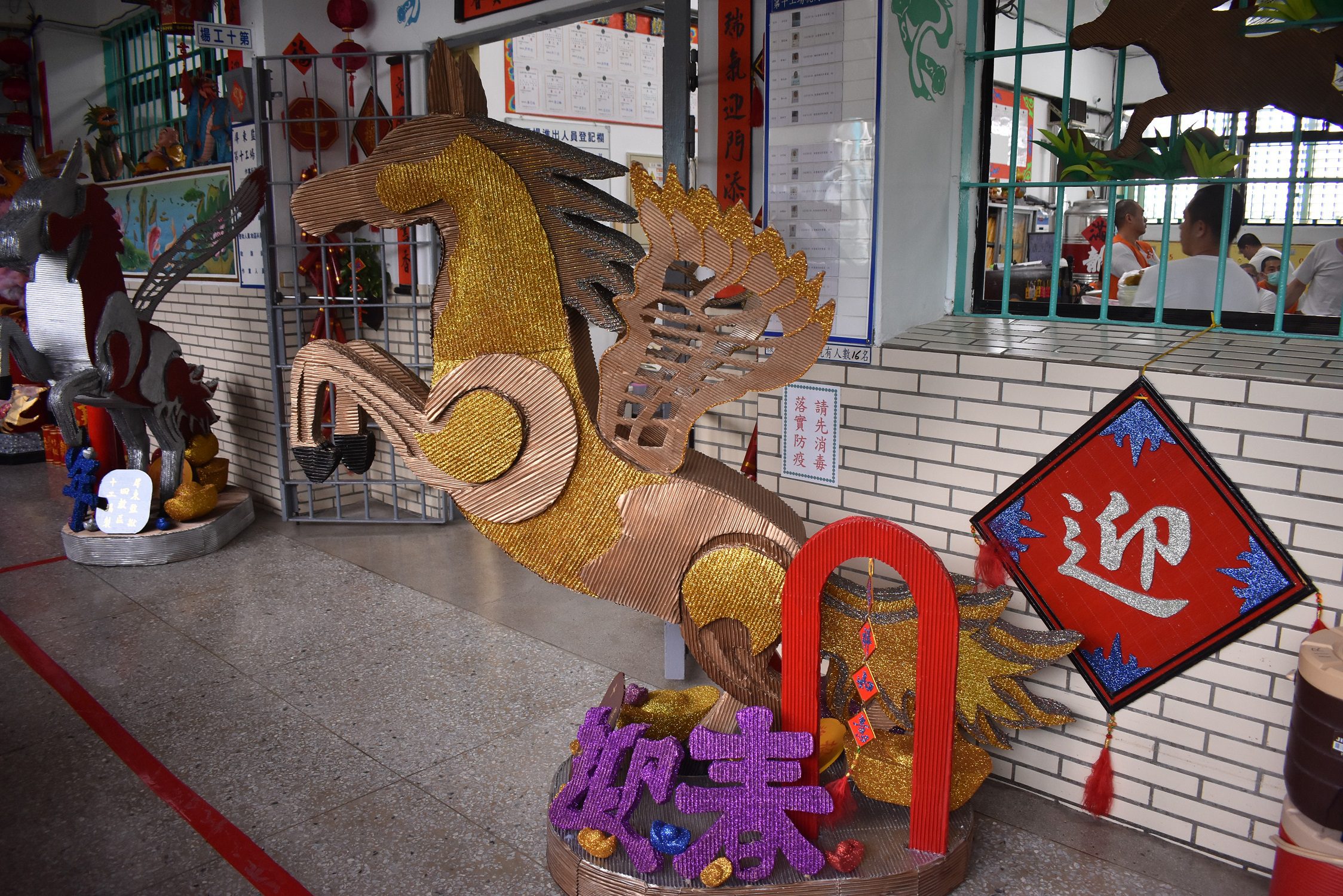 今年春節環境佈置以「奔騰駿馬、希望啟程」為主題,結合收容人創作巧思與教化成果展示,於工場與公共空間布置喜氣洋洋的春聯、燈籠與馬年主題裝飾。駿馬象徵勇毅與前行,也寓意每一位收容人在人生旅途中,縱使曾經跌宕,仍能策馬揚鞭、重新出發。透過參與佈置過程,收容人不僅培養合作精神,也在一筆一畫間,書寫對新年的期盼。佈置比賽計有14個單位參加,評比結果,第十工場展現高超的創造力獲得第一名。