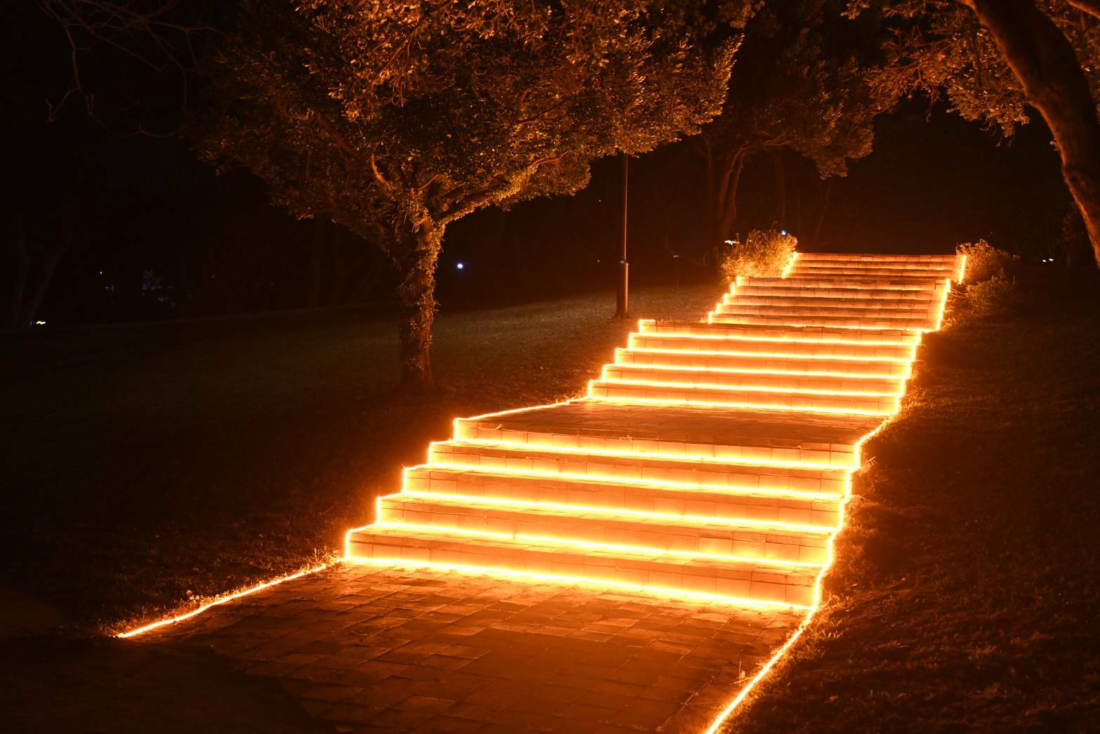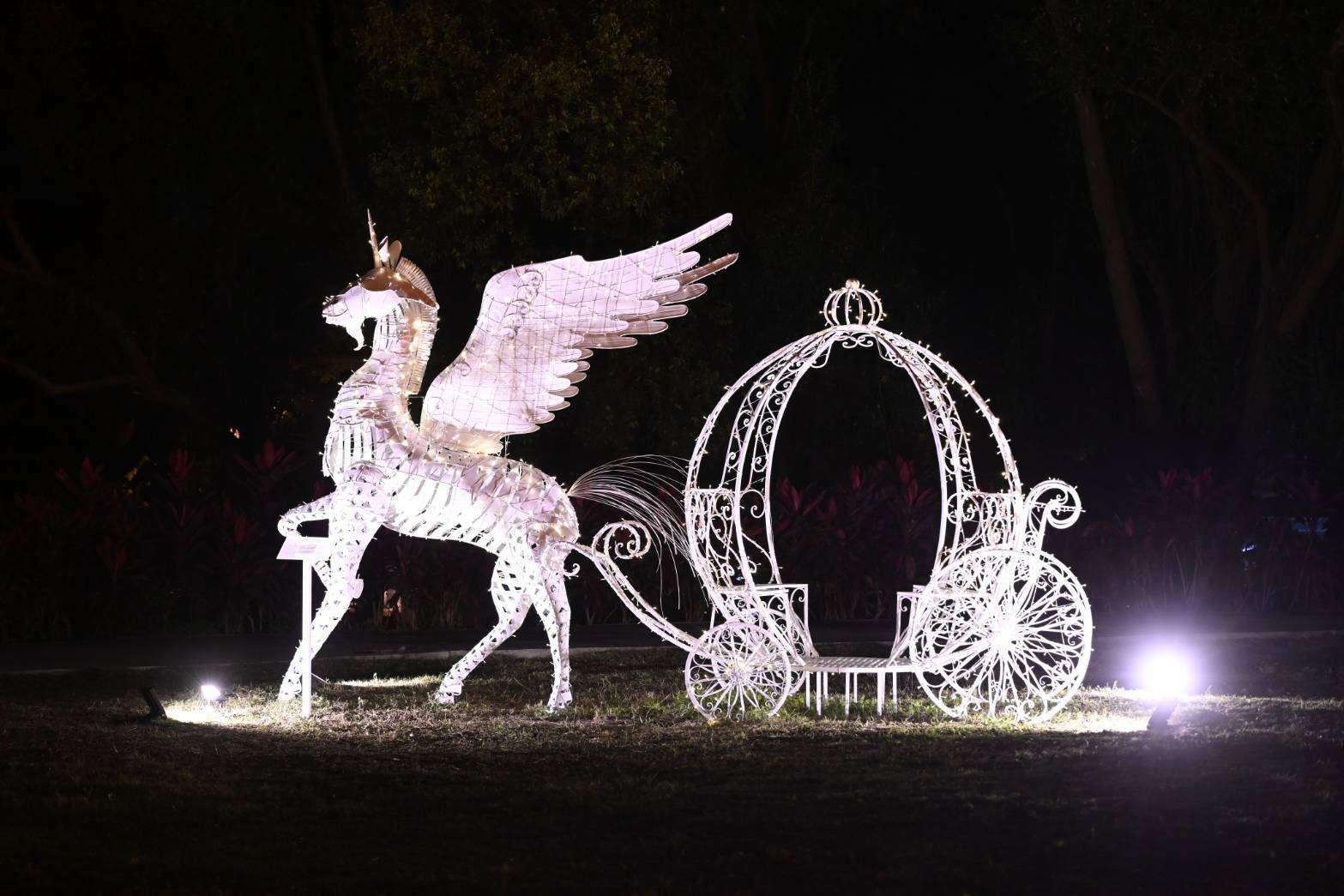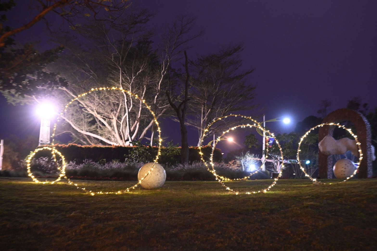 ▲大陳公園點燈後,頓時轉化成夢幻童話般的光耀森林。(圖/花蓮縣政府提供,下同)
