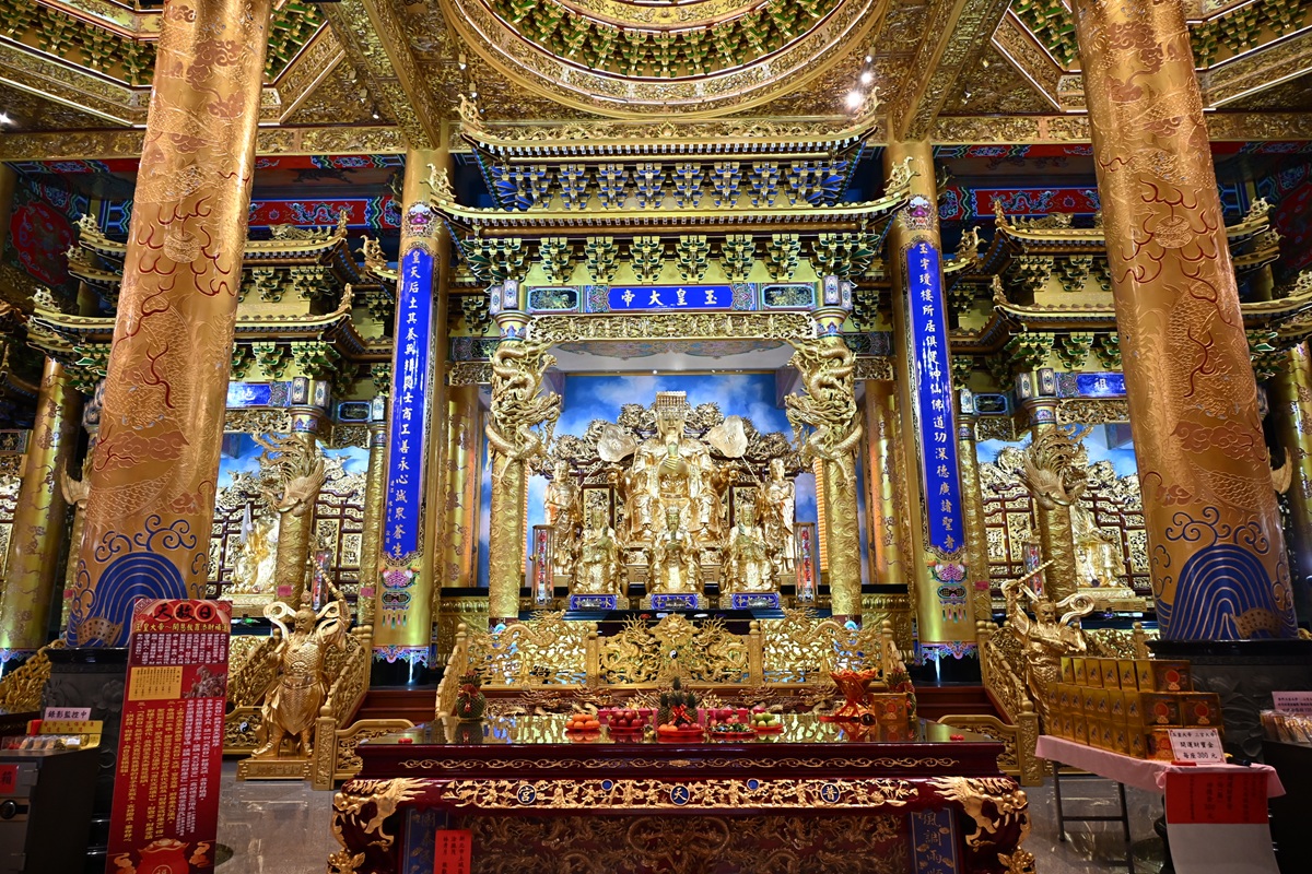 ▲芳苑普天宮內的「凌霄寶殿」金碧輝煌,有精湛的寺廟建築工藝,其背後流傳的「白馬峰」地理傳說。(圖/彰縣府提供)