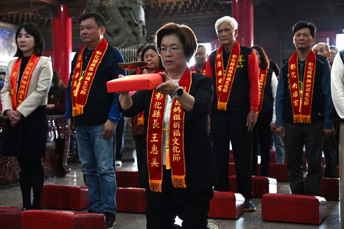 縣長王惠美表示,去年擲筊選爐主,媽祖聖示今年由芳苑普天宮接任舉辦「2026彰化縣媽祖祈福文化節」。感謝爐主宮廟的用心,以及其他12間媽祖廟的齊心協力,共同傳承及發揚媽祖文化,媽祖祈福文化節除了推廣媽祖文化外,同時也有繞境及相關活動,內容精采可期,邀請大家共襄盛舉,來芳苑普天宮祈福拜拜,一次就可獲得13尊媽祖神力加持。